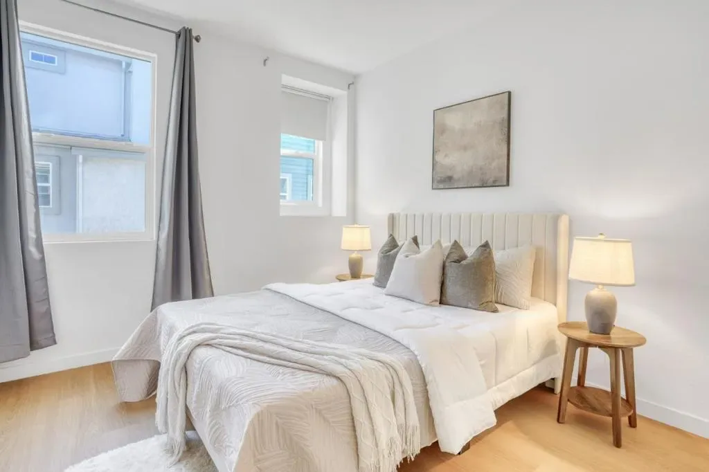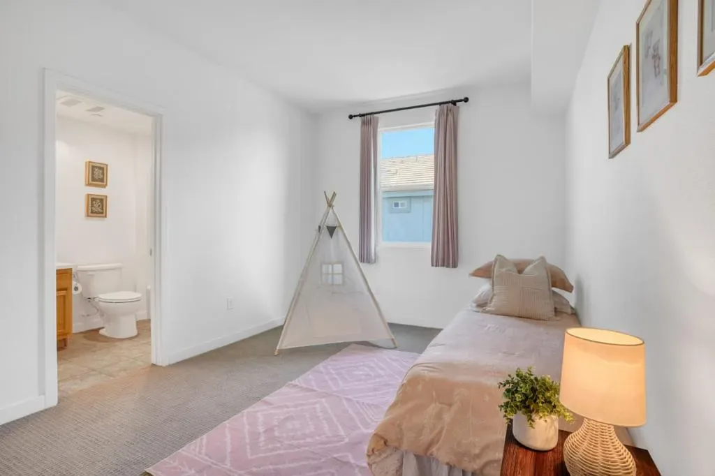 Built in 2018 by Pulte Homes, this stunning turnkey residence offers the ultimate Silicon Valley lifestyle. The bright, open-concept floor plan shines with brand-new luxury vinyl flooring, fresh designer paint, and plush new carpeting throughout. At the heart of the home, a gourmet granite kitchen features high-end appliances, perfect for the home chef. Thoughtfully designed for flexibility, the main living level includes a full bedroom suiteideal for guests or multi-generational living. Upstairs, discover two spacious, light-filled bedrooms, each boasting a private en-suite bath, including a primary suite with a dual-sink vanity and walk-in shower. Step outside to your large private balcony to enjoy the fresh air. Unbeatable Convenience: Located just steps from top-rated MABEL MATTOS Elementary, STRATFORD School, and local parks. Commuters will love the walking-distance access to Milpitas BART and the Great Mall, with effortless access to I-880/680. Low HOA fees include garbage and common area maintenance. Dont miss this modern gem!