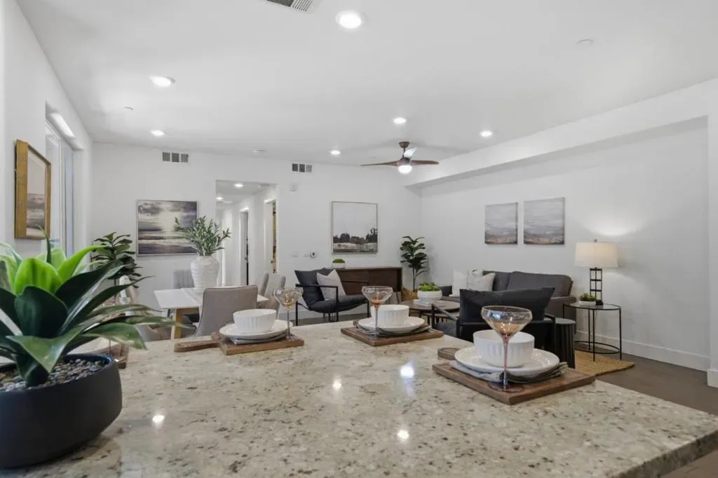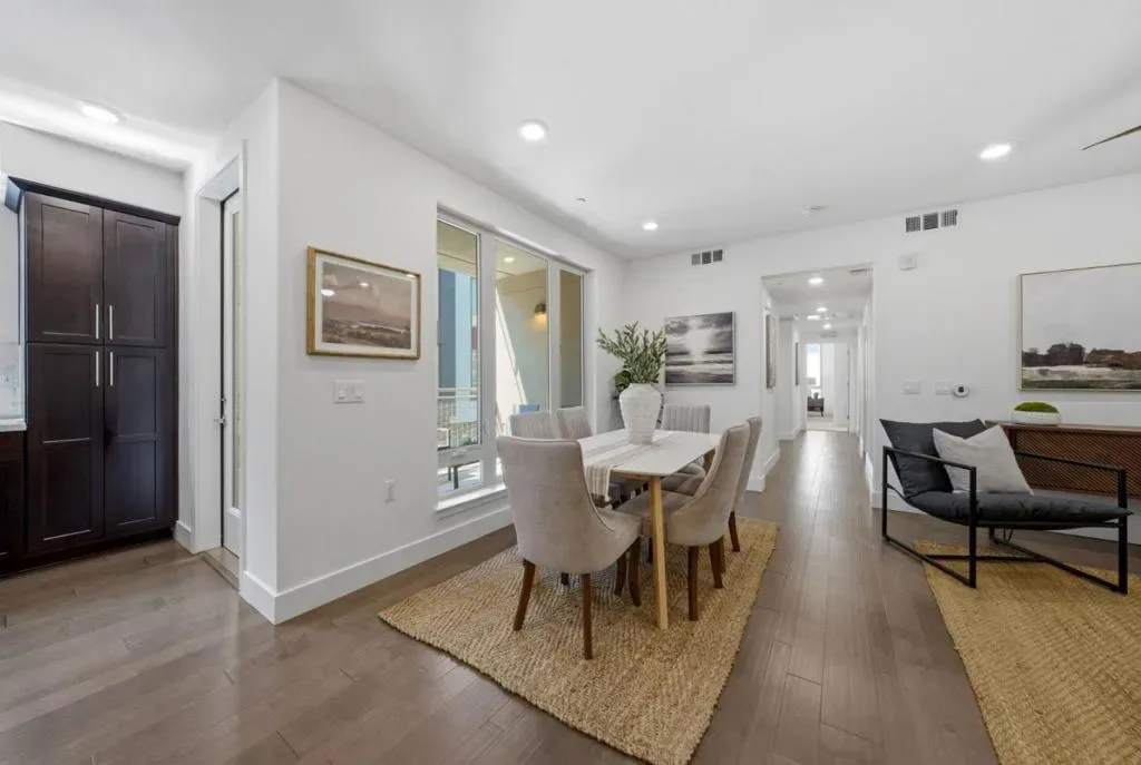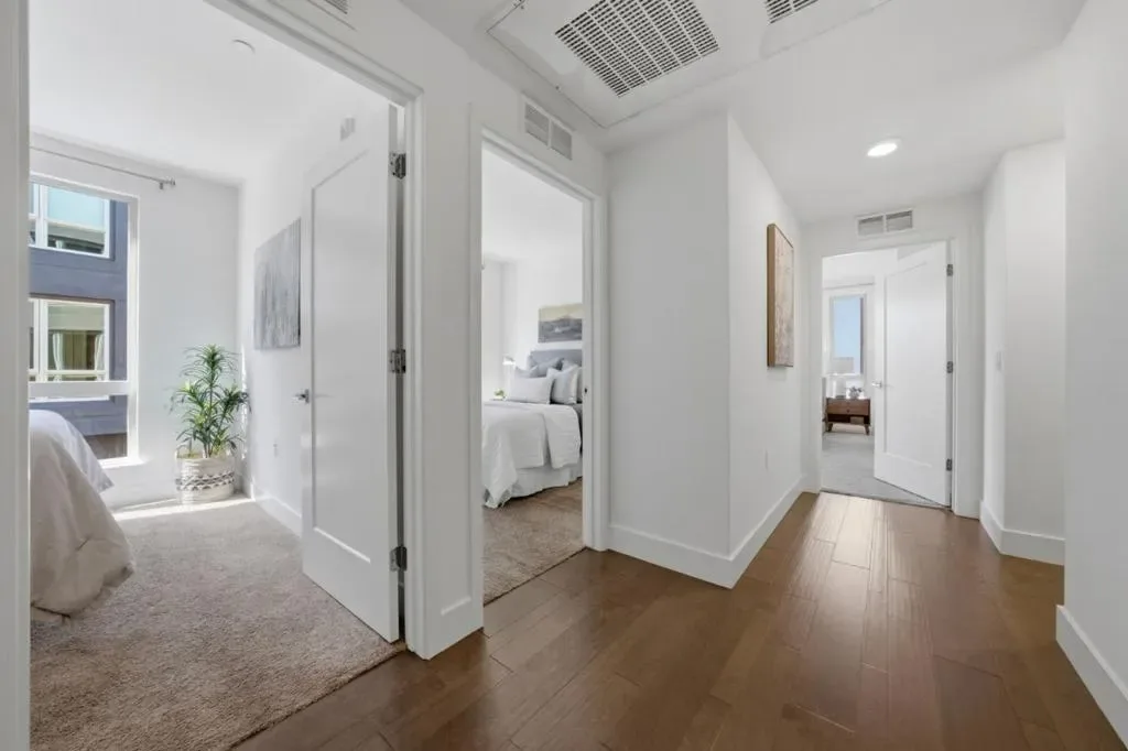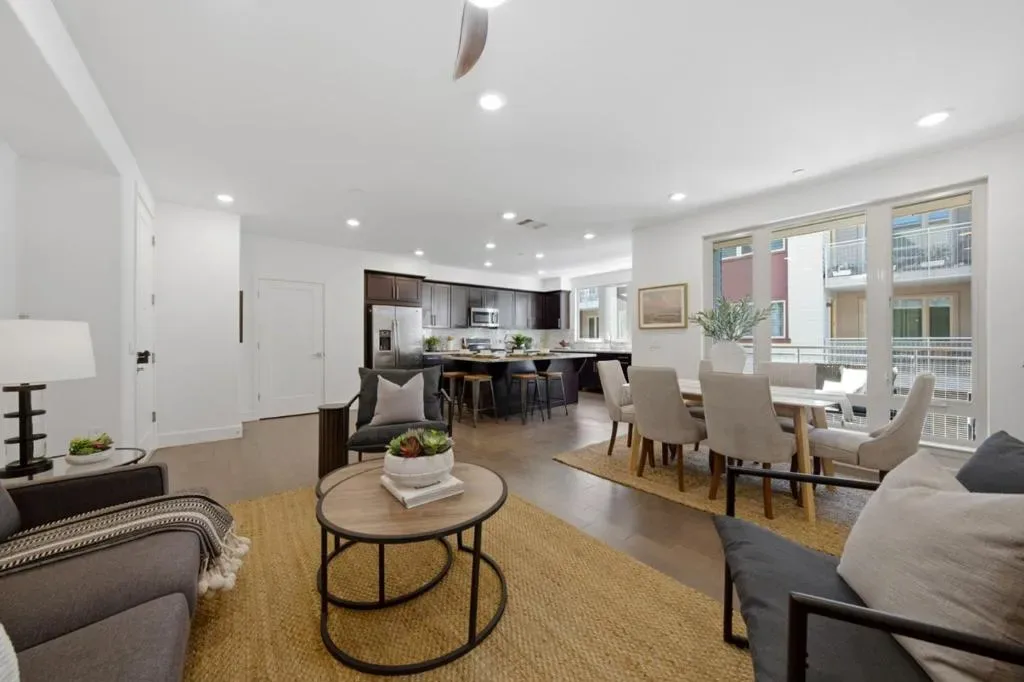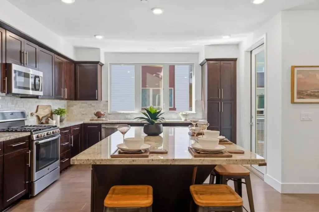Welcome to this desirable Milpitas residence featuring one of the most sought-after layouts in the community. Unlike most units, this home offers single-level living with no downstairs neighbors and direct access to a private attached two-car garage, creating a townhome feel with the ease of condominium living. Built in 2018, this light-filled home features an open floor plan with expansive windows, spacious living room, and long private balcony. The kitchen is larger than typical for the community and includes a center island, abundant cabinetry, and stainless steel appliances. The layout includes a spacious laundry room with side-by-side washer and dryer hookups. Attached two-car garage offers side-by-side parking, under-stair storage, and direct access to the home. Elevator and front-entry access also provide stair-free living. Additional highlights include a spacious primary suite with walk-in closet and dual-sink vanity, tankless water heater, smart thermostat, Ring doorbell, Alexa integration, and Wi-Fi lighting. Residents enjoy McCandless Park, playgrounds, guest parking, and walkability to Milpitas BART, VTA, dog park, creekside trails, Great Mall, Target, Trader Joe’s, 99 Ranch Market, major freeways, tech campuses, and Stratford School nearby. Come visit your new home!