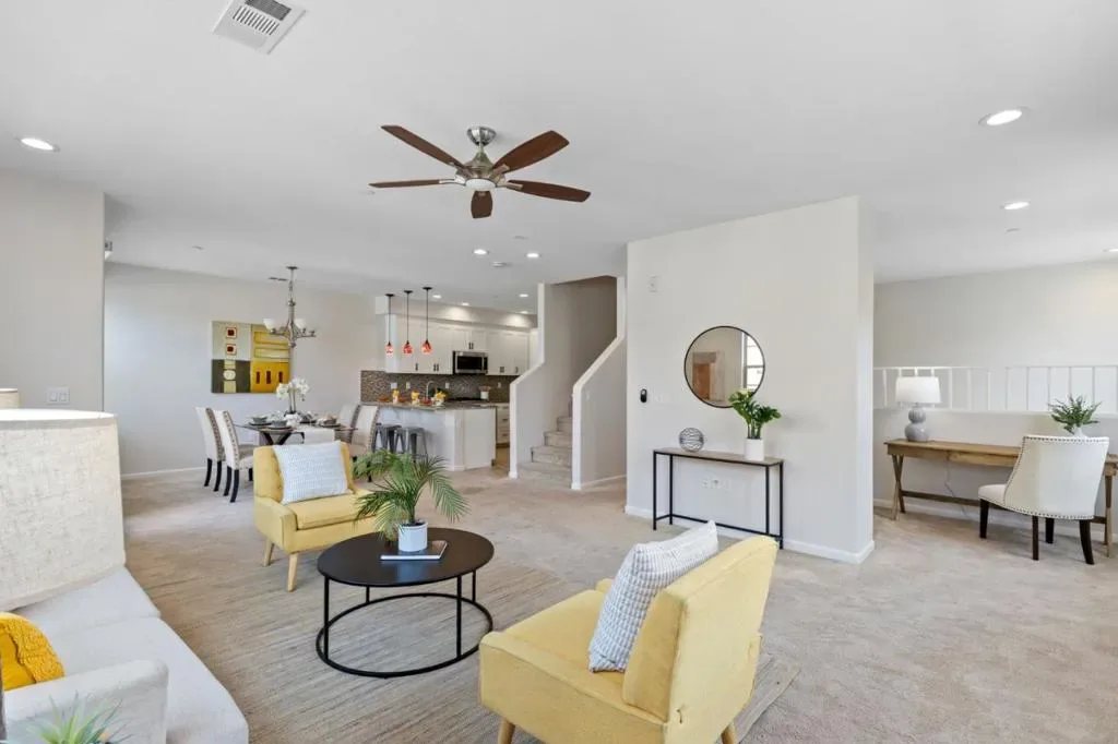 Discover refined comfort and modern style in this desirable end-unit townhouse in the Traverse community of Milpitas. This beautifully updated 3-bedroom, 3.5-bath home features a freshly painted interior and bright, airy living spaces. The 1st level offers a private bedroom en-suite with a walk-in closet ideal for guests, multigenerational living, or potential rental a deep storage closet under the stairs. The 2nd floor showcases an open-concept layout with living, dining, and kitchen areas, a powder room, and private balcony. The kitchen includes stainless steel appliances, granite countertops, a breakfast bar, & newly painted cabinetry & hardware. West-facing windows fill the living room with natural light, perfect for entertaining. On the 3rd level, the primary suite offers a walk-in closet and spa-like bath with dual sinks, separate shower, and soaking tub. An additional bedroom, hallway bath, laundry, and linen storage complete the top floor. Additional highlights: finished 2-car garage, community parking, low HOA dues that include garbage and a community play area and top-rated Milpitas schools. Convenient to 880/680, BART, light rail, tech hubs, and Great Mall. This turnkey home blends modern style with ultimate convenience. Open House Sat 03/14 & Sun 03/15 from 1-4 PM.