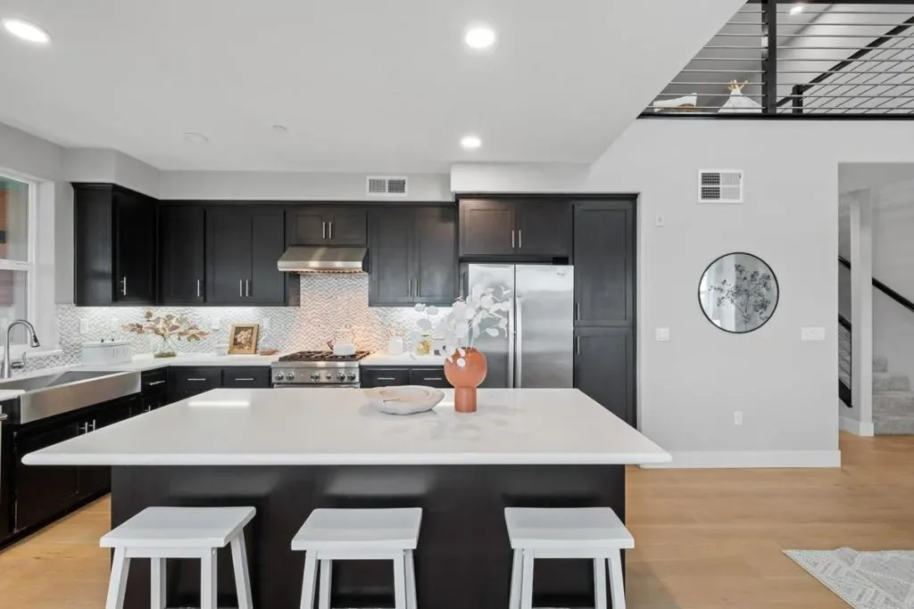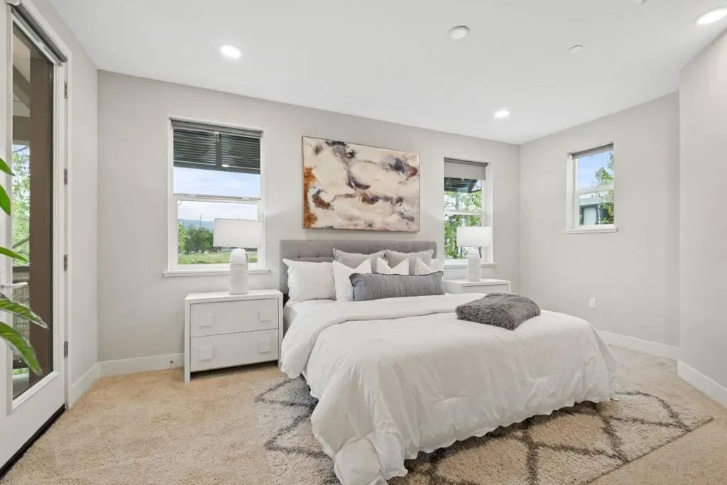 *Dramatic high ceilings, mountain views, top-rated schools, and a corner-unit setting define this exceptional 7-year-new home with bright, open living. Natural light fills the living, dining, and kitchen areas, which flow seamlessly to a private patio.*The kitchen features a large center island, ample cabinetry, sleek backsplash, premium stainless steel appliances, and a Thermador stove. A rare ensuite bedroom is located on the main level. Upstairs, a spacious family room or loft opens to a covered patio. *The primary suite offers mountain views, dual sinks, a walk-in closet, and extra storage. Upgrades include recessed lighting, multi-zone HVAC, and in-home laundry. *A 2-car garage includes storage and an EV charger. Owned solar (8 panels) with battery backup installed ~Dec 2025. Prime location, walk to Great Mall and Trader Joes; minutes to Costco, 99 Ranch, and H Mart. Easy access to BART, VTA, and Highways 880/680. Top-rated schools: Mabel Mattos (10/10), Rancho Milpitas (9/10), Milpitas High (9/10) per GreatSchools. Near major employers like NVIDIA, Google, Apple, Supermicro, and Cisco