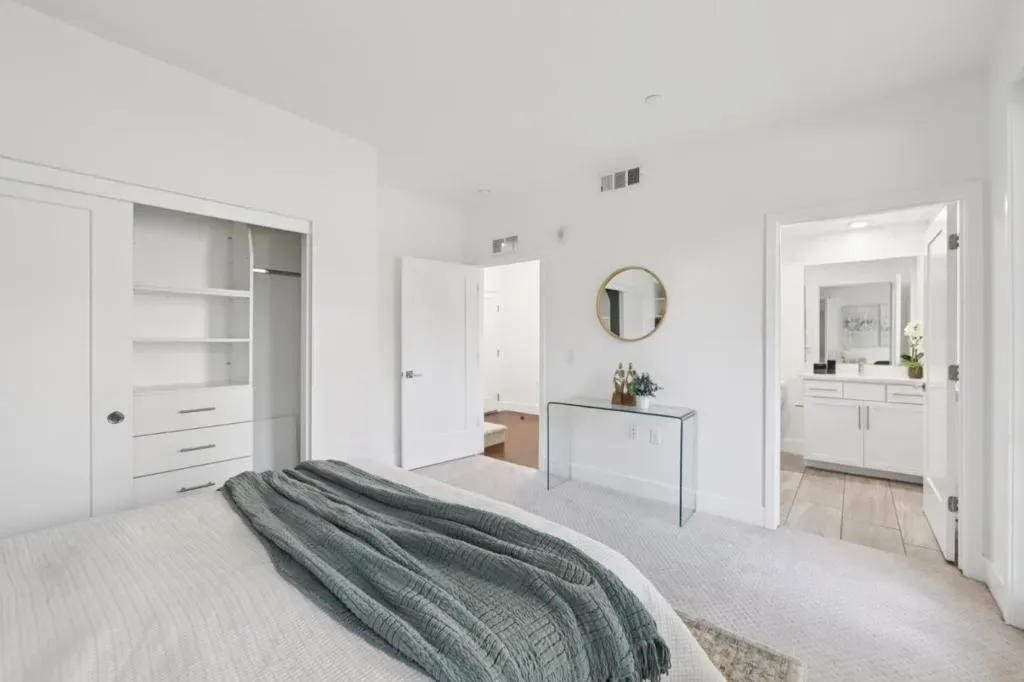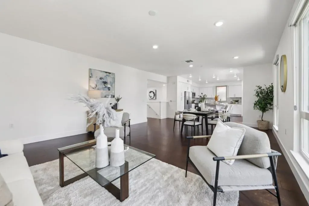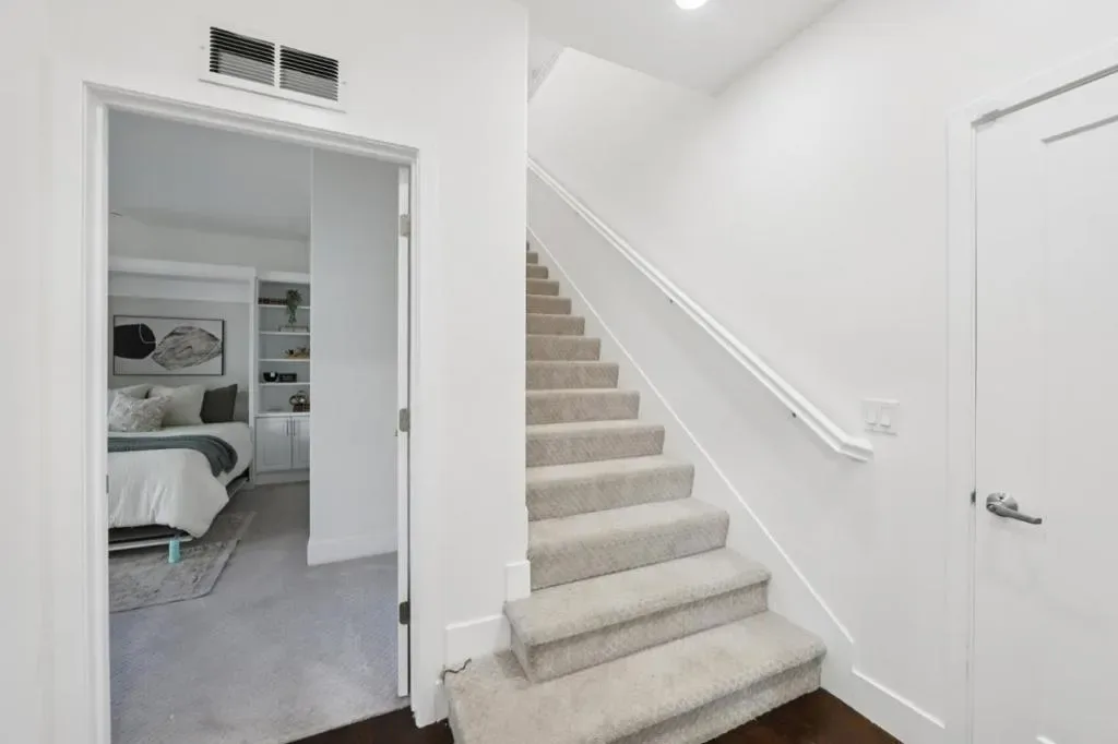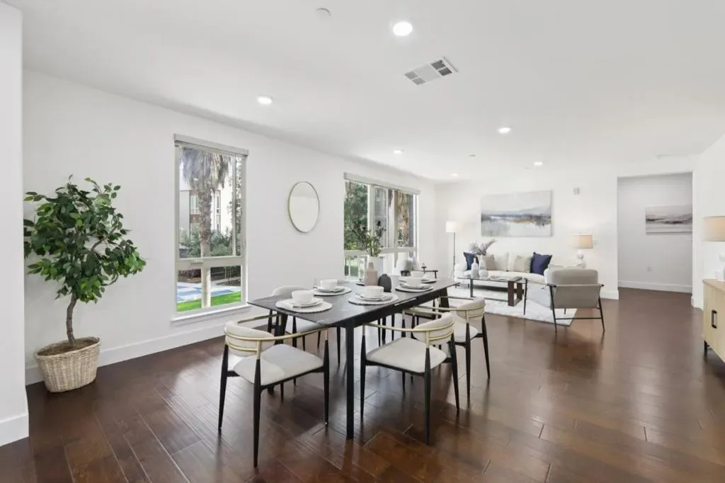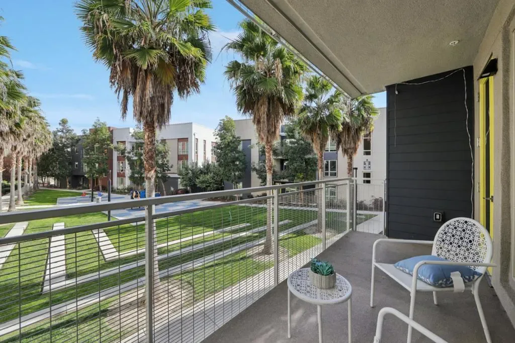 Welcome to this modern, resort like, light filled corner residence, the only 2 story townhouse style condo in the community. Featuring 2 spacious balconies with direct park views, an attached 2 car garage, and enterprise grade smart home infrastructure throughout. 3 bedrooms · 3 full bathrooms · 2 private suites · HOA $564/month The first floor suite includes a built in queen Murphy bed, custom cabinetry, and a private walk out balcony. Upstairs, the open concept main living area offers abundant natural light, corner windows, hardwood flooring, and new carpet. The gourmet kitchen features expansive countertops, sleek cabinetry, and brand new stainless steel appliances. Smart home is professionally wired with enterprise grade infrastructure. A PoE gigabit switch powers hardwired Ring cameras, WiFi 6 mesh, and smart LED lighting throughout, all running on Cat6 Ethernet with no battery dependency. EV ready garage with Level 2 charger, epoxy flooring, and built in cabinetry. Meticulously maintained in like new condition. Prime location near Great Mall, dining, shopping, freeway access, and Milpitas BART/VTA. Top rated Northwood Elementary School.