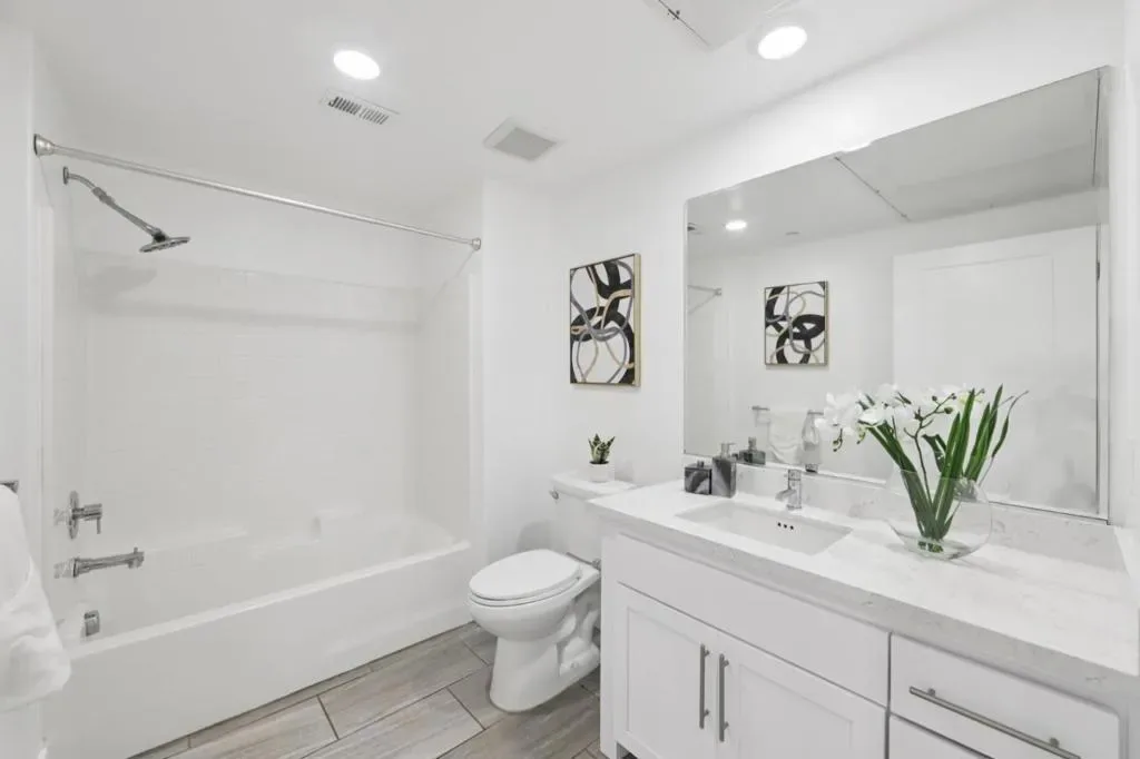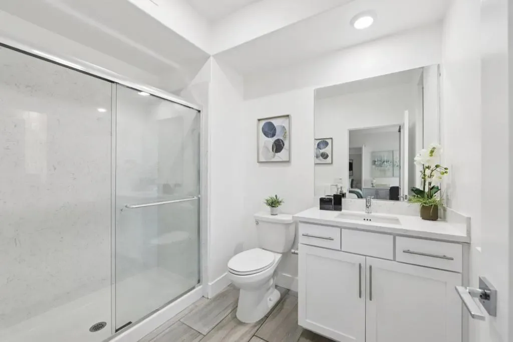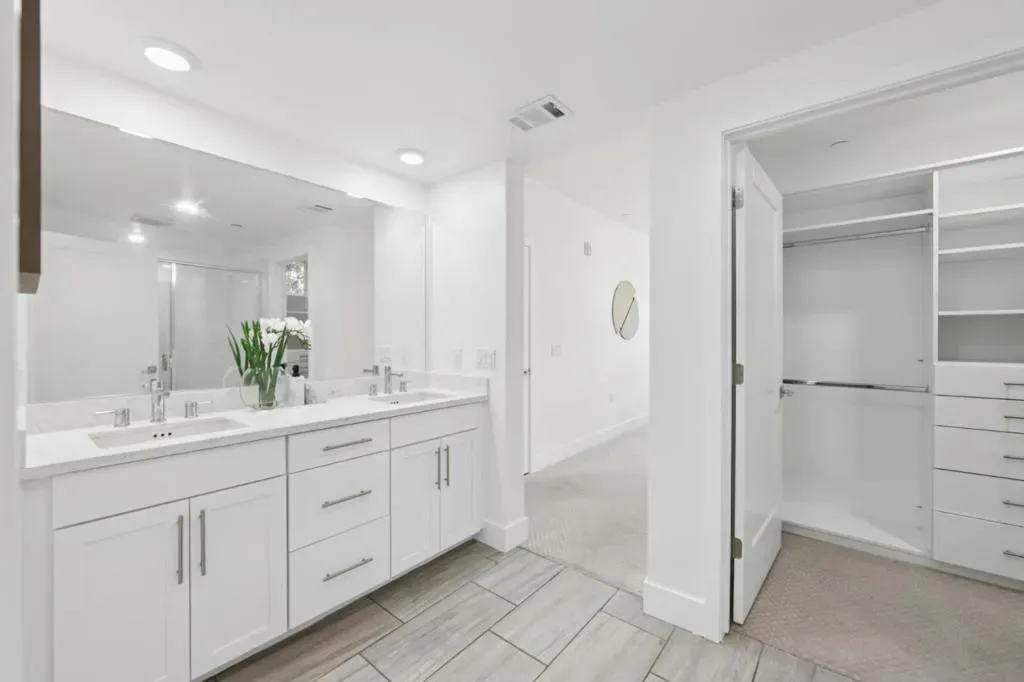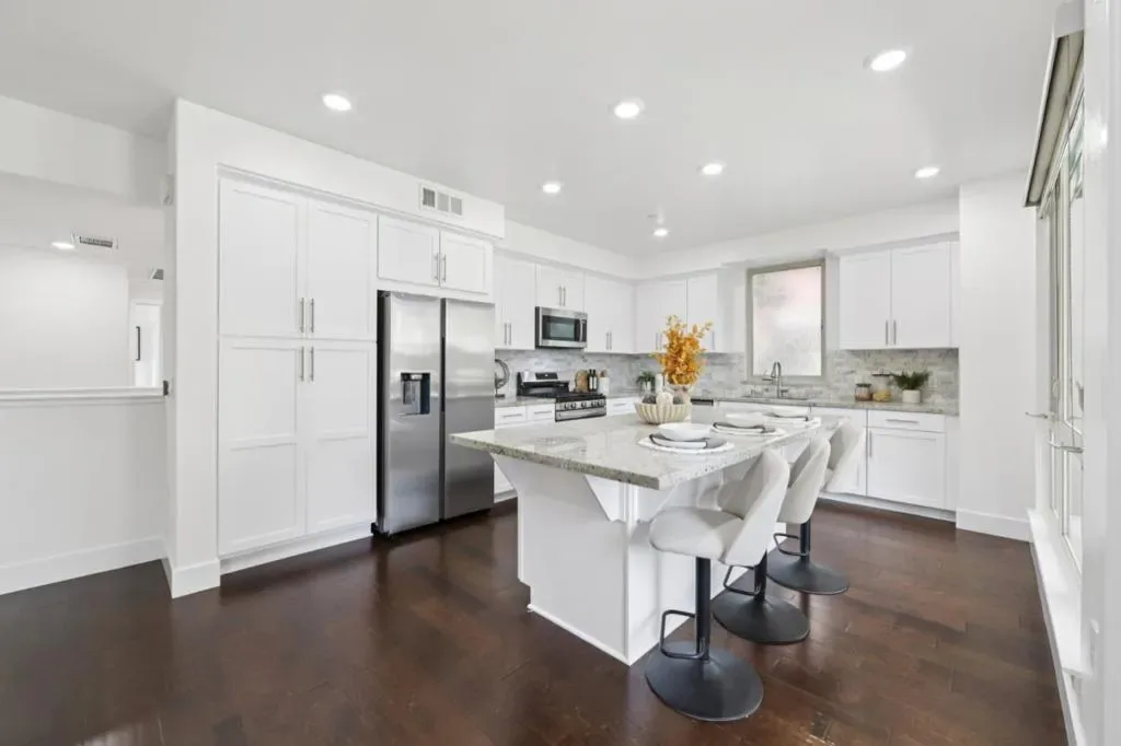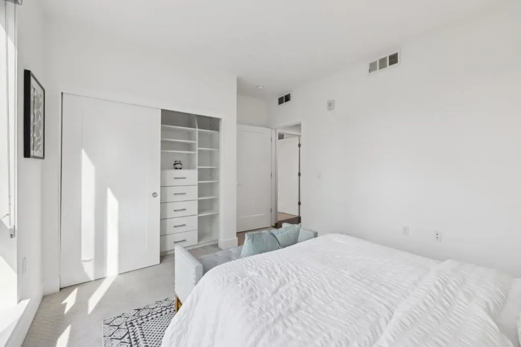 Welcome to this modern, resort like, light filled corner residence, the only 2 story townhouse style condo in the community. Featuring 2 spacious balconies with direct park views, an attached 2 car garage, and enterprise grade smart home infrastructure throughout. 3 bedrooms · 3 full bathrooms · 2 private suites · HOA $564/month The first floor suite includes a built in queen Murphy bed, custom cabinetry, and a private walk out balcony. Upstairs, the open concept main living area offers abundant natural light, corner windows, hardwood flooring, and new carpet. The gourmet kitchen features expansive countertops, sleek cabinetry, and brand new stainless steel appliances. Smart home is professionally wired with enterprise grade infrastructure. A PoE gigabit switch powers hardwired Ring cameras, WiFi 6 mesh, and smart LED lighting throughout, all running on Cat6 Ethernet with no battery dependency. EV ready garage with Level 2 charger, epoxy flooring, and built in cabinetry. Meticulously maintained in like new condition. Prime location near Great Mall, dining, shopping, freeway access, and Milpitas BART/VTA. Top rated Northwood Elementary School.