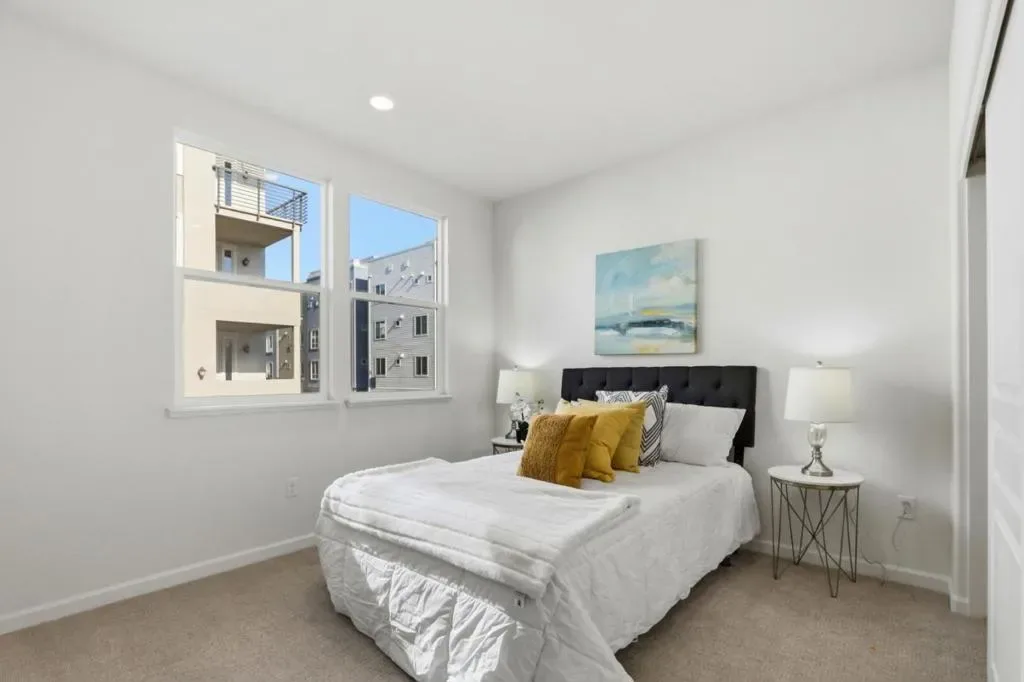 Walking distance to Bart. Welcome to this charming 2-bedroom, 2-bathroom home located in the vibrant city of Milpitas. This home offers a seamless blend of comfort and style. The kitchen is a chef’s delight, featuring a gas cooktop, dishwasher, exhaust fan, garbage disposal, and a convenient island with sink. Additional kitchen amenities include a microwave, gas oven, and a self-cleaning oven for easy maintenance. Enjoy meals in the formal dining room, or relax in the kitchen/family room combo. The home boasts high ceilings and energy-efficient features such as double pane windows, energy star lighting, and a tankless water heater. Flooring includes a mix of carpet, laminate, and tile, adding to the home’s appeal. Stay cozy by the fireplace, and enjoy the convenience of central air conditioning and central forced air heating. Fresh painting. Great location close to Great Mall, Milpitas BART, VTA, fwy 880/680 for commuter ease. Top Rated School District- Mabel (10 of10), Ranch (9 of 10), and Milpitas High ( 9 of 10). No rental restriction. Won’t last long!
