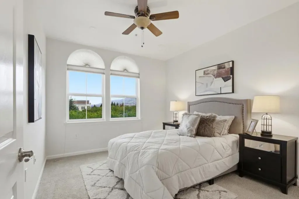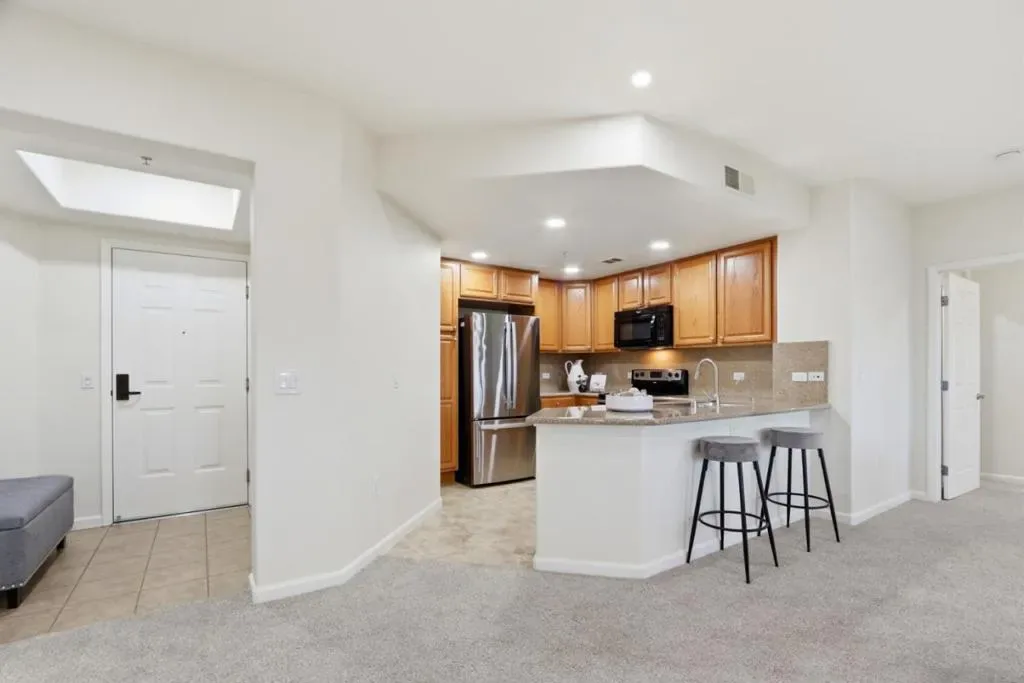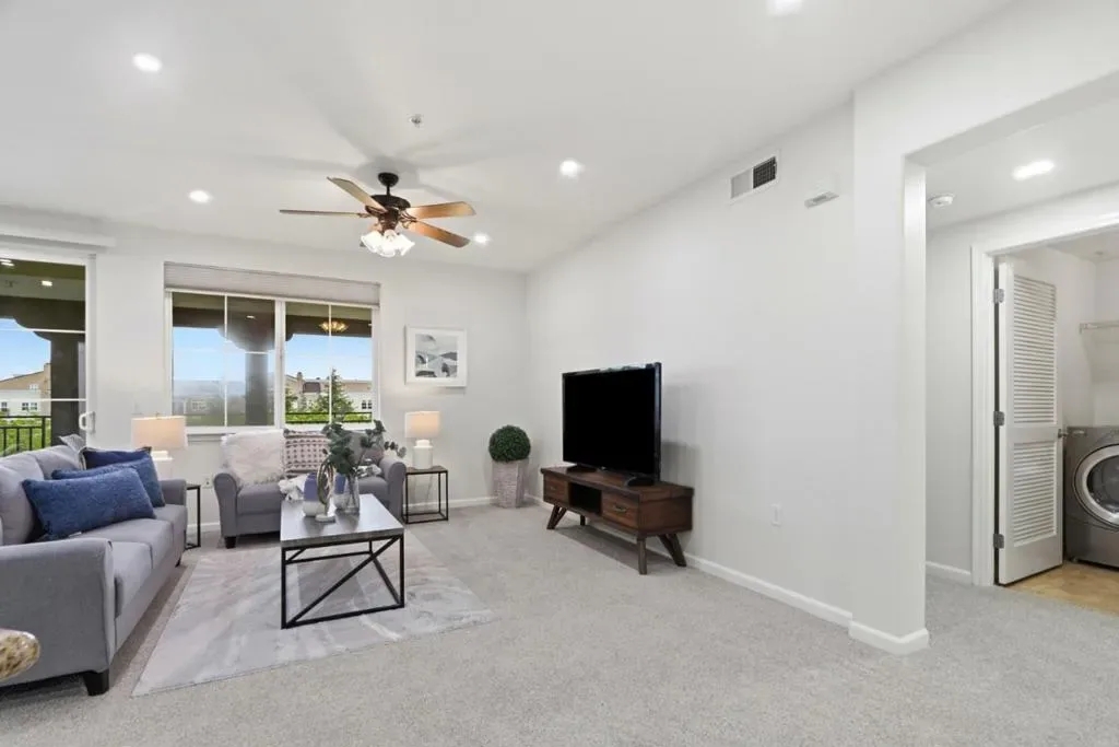 Welcome to updated 2BD/2BA home in prime Milpitas location! Approx. 1,309 sq ft with fresh designer paint and new plush carpet,move-in ready. Gourmet kitchen with granite countertops and stainless steel appliances, including electric oven range, microwave, and refrigerator. Enjoy meals in the designated dining area, featuring a breakfast nook in the living room. This home features a mix of carpet and tile flooring, creating a warm and inviting atmosphere.Take advantage of the indoor laundry facilities for added convenience.Spacious private patio with mountain views and garden bed perfect for relaxing or entertaining. This unit comes with 2 additional storages next to the unit. The property also boasts a host of amenities such as a security gate, and a well-maintained heated pool with a spa, cabana, well equipped gym and HOA covers water including hot water in the unit. Close proximity to VTA, BART, Great Mall ,880, 680,Milpitas library makes it more desirable. Don’t miss out on this well-rounded and cozy home.