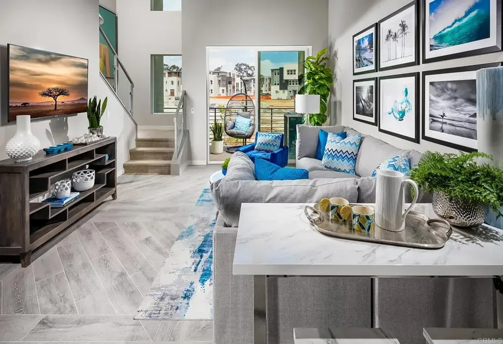 Model home plan 5 offers an impressive array of designer-selected upgrades that elevate the living experience in the 3Roots community of Sorrento Mesa. This townhome is thoughtfully appointed with high-quality features that ensure both style and convenience. Enhancements include Upgraded flooring, kitchen with custom counters and custom back splash, maple Shaker cabinets, stainless steel appliances w/refrigerator, open rail staircase, primary close organizer system, window coverings, builder music and security package, EV outlet in garage, laundry with washer and dryer, owned solar and many more professional designer selected features. This is your opportunity to own the beautiful contemporary Atwood-Plan 5, 2 BR + office, 2.5 BA town home with 2 car garage attached. The recently built green community has designated more than 200 acres as preserved open space, with trails, parks, and paseos offering outdoor gathering and recreational spaces for all ages. Close to restaurants and shopping. Enjoy the resort-style amenities state of art clubhouse, fitness center, two pools, dry sauna, hot tub and recreation parks. This dynamic community sits 17 miles north of downtown San Diego and approximately 10 minutes from the California coastline, discover the stylish Atwood at 3 Roots neighborhood.