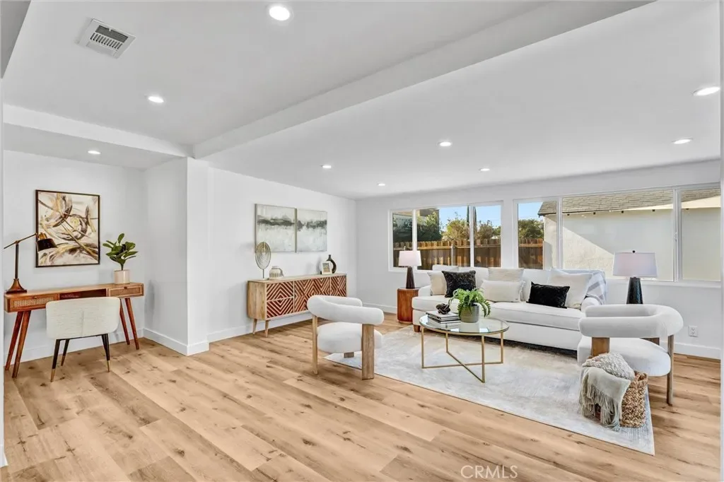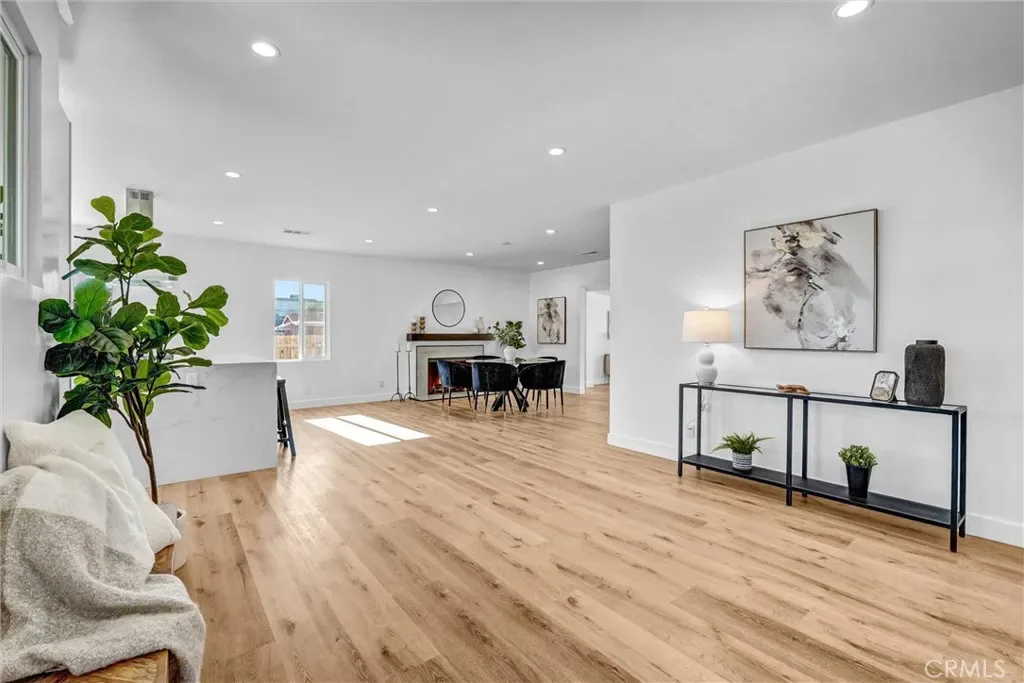 Step inside to a fully renovated interior where every surface has been thoughtfully redesigned. The expansive living room is filled with natural light and flows seamlessly into the dining area and the brand-new chef’s kitchen. The kitchen showcases all-new custom cabinetry, quartz countertops, designer backsplash, stainless steel appliances, and an oversized peninsula perfect for entertaining.