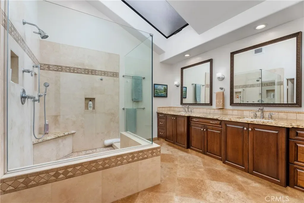 Throughout the home, you’ll find stone and teak hardwood flooring, skylights, newer dual-pane windows, and additional attic insulation for year-round comfort. The private backyard is a true retreat—complete with a large PebbleTec pool (8 feet deep), separate spa, and spacious patio area ideal for outdoor entertaining. Additional highlights include an oversized two-car garage with insulated door, cabinets, and overhead storage, an ADT security system, and an owned Culligan water softener. Cox cable and Cityside Fiber connectivity are both available. The side yard access provides the perfect space for a dog run or a garden or… Enjoy the best of Mission Viejo lakeside living — swim, sail, or relax by the water, then return home to the comfort and serenity of this exceptional Andalusia residence.