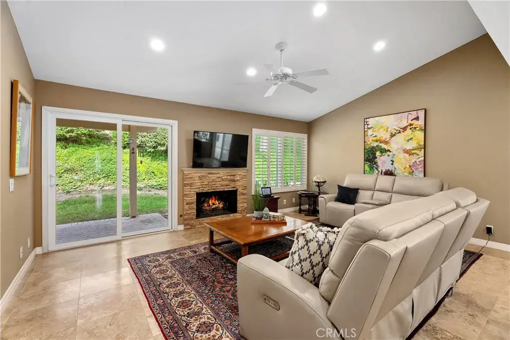 Welcome to your dream home in the 55+ community of Casta del Sol—This exquisitely remodeled, single-level residence blends timeless design with modern comfort. Sitting on a corner lot, the open floor plan seamlessly connects the living, dining, and kitchen areas, creating a fluid and functional layout ideal for both daily living and entertaining. Travertine tile flooring throughout the home compliment the warm wood kitchen cabinetry and granite counters. A large island offers plenty of storage with roll out shelves and a place for conversation. The spacious updated primary suite boasts a stunning en-suite bathroom, large walk-in closet with custom built-ins and a walk-in shower. The additional bedrooms are equally spacious and versatile, perfect for guest accommodations, a home office, or creative space. A second full bathroom has also been completely updated, featuring a walk-in shower with glass enclosure. (The third bedroom is currently open to the family room and used as an office. It can easily be converted by adding a door) The garage includes plenty of storage with built-in cabinetry and a pull-down ladder for easy attic access. Other updates to the home include custom book shelves in office, recessed lighting, paneled interior doors, double pane windows with plantation shutters and scraped ceilings, as well updated water heater, furnace and A/C. Refrigerator, washer, dryer and family room TV included. The property was RE-PIPED with PEX piping. Casta del Sol offers an extensive range of community amenities that include swimming pools and spas, tennis courts, pickle ball courts, billiards, craft room, lawn bowling, shuffleboard, walking paths, outdoor BBQ’s and plenty of social activities and events to participate in to connect with residents. This property includes a membership to Lake Mission Viejo where you can enjoy fishing or taking a boat out for a ride, along with summer movies and concerts.