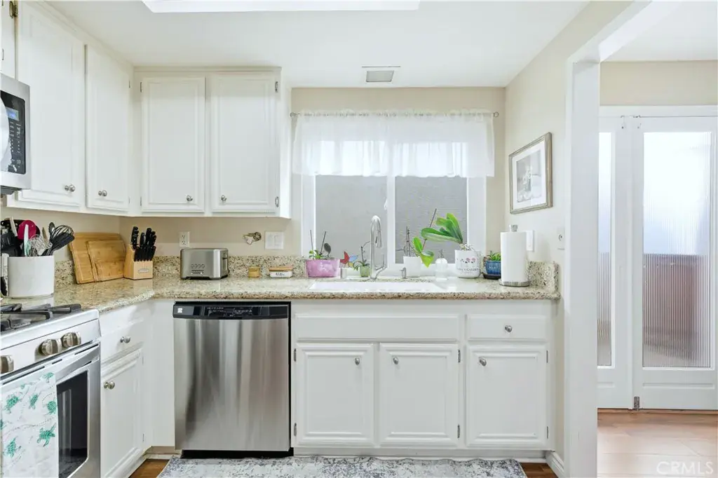 IT IS SO PEACEFUL AND QUIET, AND THERE IS THAT SENSE OF SECURITY…. When asked what the seller most enjoyed about this home; that was the answer. She could have said the fabulous location as an end unit on a cul-de-sac street with a huge greenbelt and a view of a park and trees near the main entrance and a Community Center. She could have said the convenience of a single story home. She might have said the remodeled bathrooms with quartz counters and backsplash, the tile showers with dual barn style sliding glass doors, soft close/dovetail joint construction shaker style cabinet drawers, the tile flooring or the recessed can lighting. I may have emphasized the fresh paint, the textured ceilings, the Decor plugs and switches, the raised panel doors, the oversized baseboards, the engineered wood flooring, the plantation shutters, the dual paned vinyl windows and sliders or opening up the wall between the kitchen and the dining room to help create that popular great room affect. The third bedroom has been converted to a den. Of course, everyone knows about the Casta del Sol lifestyle and the magnificent amenities this 55+ community has to offer. It is hard to find something you cannot do. Normal things like tennis, swimming, spa/hot tub, pickleball, clubhouse and gym/exercise/weight room are a given. Card rooms, billiard rooms, craft rooms, recreation rooms, lawn bowling, gardening, a library, numerous clubs and activities all make it easy to get out and socialize if that is your interest. Bang for your buck? Your HOA dues include community management, front yard maintenance, exterior painting and trash pickup which all contribute to reduced stress and a carefree environment. Membership to Lake Mission Viejo with its Summer Sunset Concert Series, fireworks display, boating, swimming, occasional fishing and the annual “Taste of the Lake” is included. And we have not even begun to talk about living in Mission Viejo and shopping at Mission Viejo Mall, the convenience of the nearby Mission Hospital with its Trauma Center, the opportunities for travel using the Metrolink or John Wayne Airport, the proximity of world famous destination beaches or the equal distance to cultural and sporting events in either Los Angeles or San Diego. Do yourself a favor and come take a look. You won’t be sorry if you do.