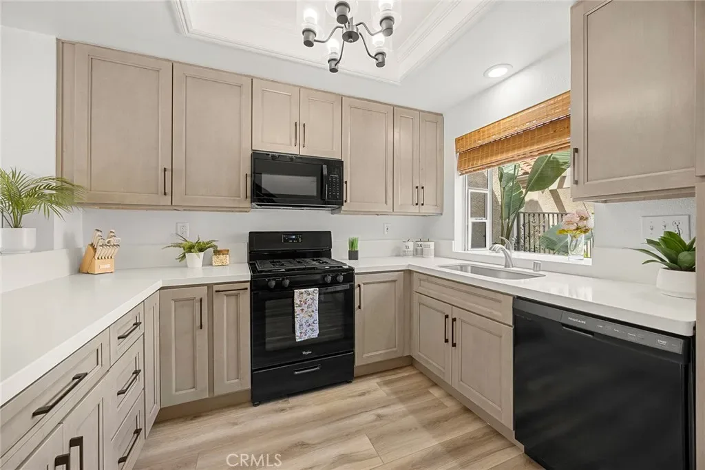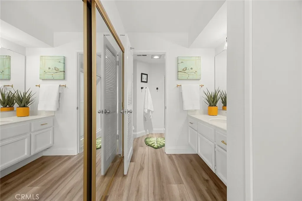 Look no further than this beautiful townhome featuring TWO PRIMARY SUITES, each with its own private en suite bath, an optional home office, home gym, or even a nursery, 2.5 baths, a remodeled kitchen, and a two-car direct access garage. Located in the highly sought-after Coral Gardens community, this home is just a short stroll from Lake Mission Viejo. Enter through a charming gated courtyard and step inside to find easy-to-maintain luxury vinyl plank flooring and a remodeled kitchen with upgraded cabinetry and quartz countertops. Thoughtful details such as self-closing drawers, a lazy Susan, and a built-in spice rack make cooking both easy and organized. A cheerful kitchen window looks out toward the front courtyard, bringing in natural light and offering a pleasant view while you cook. A convenient pass-through opening connects the kitchen to the living area, while a separate dining room provides a dedicated space for everyday meals. The living room is centered around a gas fireplace with updated tile and mantel, creating a warm and inviting gathering space. A sliding glass door with shutters lead to the spacious outdoor patio. The main-level primary suite features large mirrored closet doors, a walk-in shower, and direct access to the large patio, creating a true downstairs retreat. Upstairs, the second primary suite offers high ceilings, generous closet space, and a private full bath. It also includes its own private balcony, perfect for enjoying a quiet moment. The third bedroom adds flexibility and is ideal for a home office, gaming room, yoga space, or nursery. It includes its own closet and is just steps from the updated guest bath. Enjoy outdoor living on the large, low-maintenance patio featuring a storage closet and plenty of space for grilling, relaxing, or enjoying fresh fruit from your own orange and lemon trees. The attached two-car garage offers direct access and includes a newer water heater. The home was painted throughout just a few years ago, including the closets, and also features newer shutters, light fixtures, toilets, and faucets. Living in Coral Gardens means enjoying the community pool, spa, and tennis courts, along with membership to Lake Mission Viejo. From the private beach and boat rentals to summer concerts and Fourth of July fireworks, it’s a lifestyle that’s hard to beat. Close to parks, shopping, dining, top-rated schools, and with easy access to the 5, and 241 freeways, this home truly checks all the boxes.