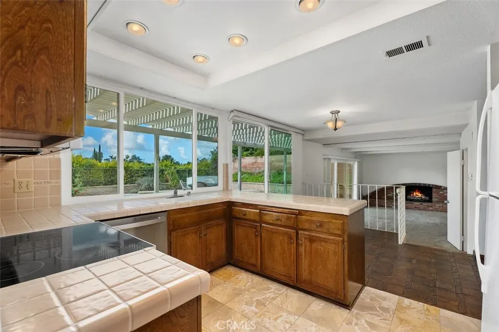 Featuring 3 bedrooms, 2.5 baths, and approximately 1,950 square feet on a generous 6,600 square foot lot, the home is filled with charm, space, and endless potential. Large newer windows and sliding doors fill the interior with natural light while showcasing peaceful hill and mountain vistas, enhancing the home’s private and serene ambiance. The thoughtful layout offers inviting living and gathering spaces, with fireplaces in both the living room and family room that create a warm setting for everyday living and entertaining.