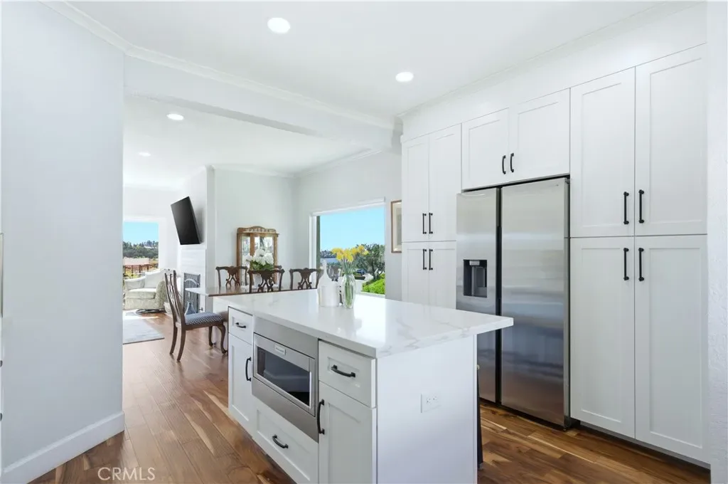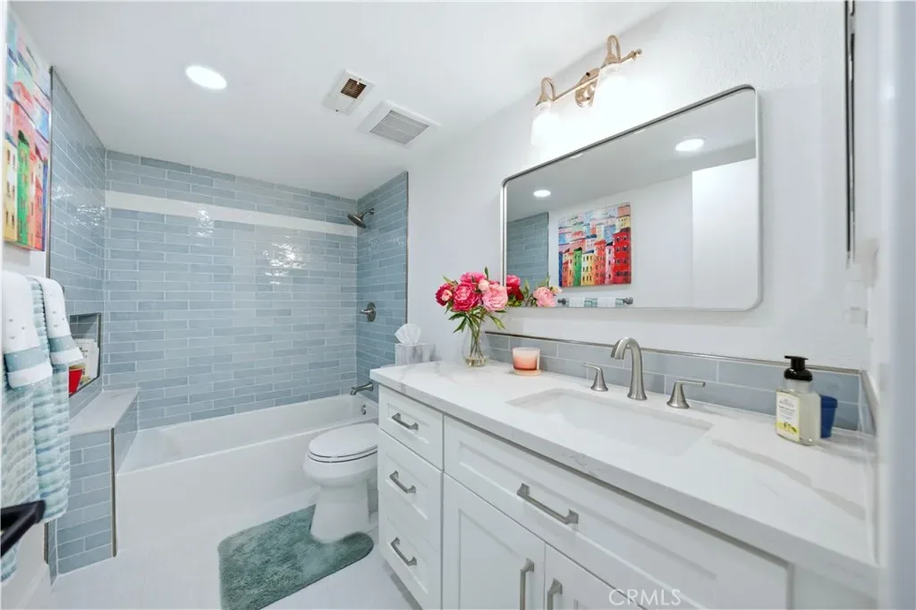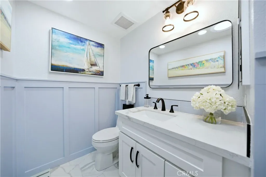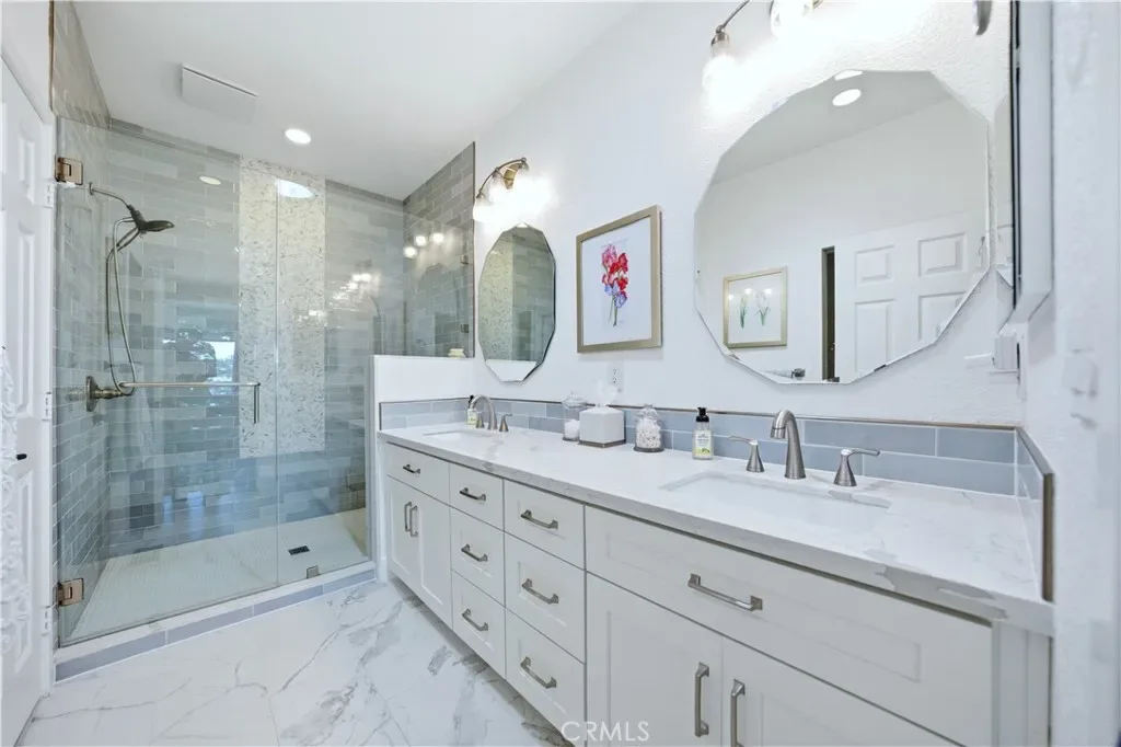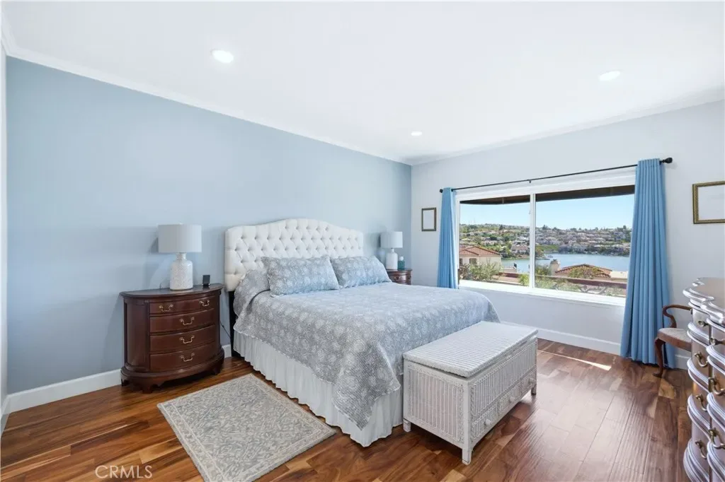 AT ONE TIME OR ANOTHER….. all of us have wondered, “why did the builder do that?” or “why didn’t the builder do that?” With the upgrades and improvements that have been made, there is no need for second guessing any of that. Talk about “turnkey”! The tasteful front courtyard is just a hint. From removing the original wall between the kitchen and dining room creating that popular “Great Room Effect” by unifying the LR, DR, kitchen and nook, to raising the ceilings 2 feet in the kitchen, nook and primary bath, to adding a useful and functional kitchen island, to installing a barn style door to more easily access the increased walk in pantry, to the thoughtful addition of solar tubes to bring natural light into the two traditionally darkest upstairs rooms, there has been obvious attention to detail that anyone would be proud to claim as their own. Common features throughout the home include textured ceilings, expensive blinds, recessed can lighting, raised panel doors, Decor plugs/switches, door casings, oversized baseboards, crown molding, vinyl windows/sliding doors, engineered wood flooring, shaker style cabinetry with soft close features and drawers with dovetail joint construction. Be sure to notice the built-out closets. The kitchen is a thing of beauty and wonder. The barn style sink, the inlay tile design and the quartz counters might distract you from appreciating the extra storage provided by the larger cabinets. In order to fully appreciate the primary bath, you would need to see what it used to look like. The floor-to-ceiling tile walls and impressive glass shower appointments just may take your breath away. Perhaps the biggest and BEST FEATURE of the home is the PANORAMIC VIEW. From inside the home, you can see north to North Beach and south to East Beach and the Oak Preserve. From the balcony off the LR, you can see north from the natural serenity of Saddleback Mountain all the way south to Alicia. We have even not mentioned the private, sandy Mallorca beach with its bar-b-q’s, picnic tables, cabana, restrooms and cordoned off swimming area. Nor have we described the 72 boat docks, 2 pools, 2 spas, the peace and quiet or the sense of security provided by a 24/7 manned gate. You are a member of LMVA (concerts, boating, swimming). Then there is that shopping option at MV Mall. Less than 30 minutes from several world destination beaches and between LA and SD, the opportunities are endless. You are investing in more than a home. It is a lifestyle.