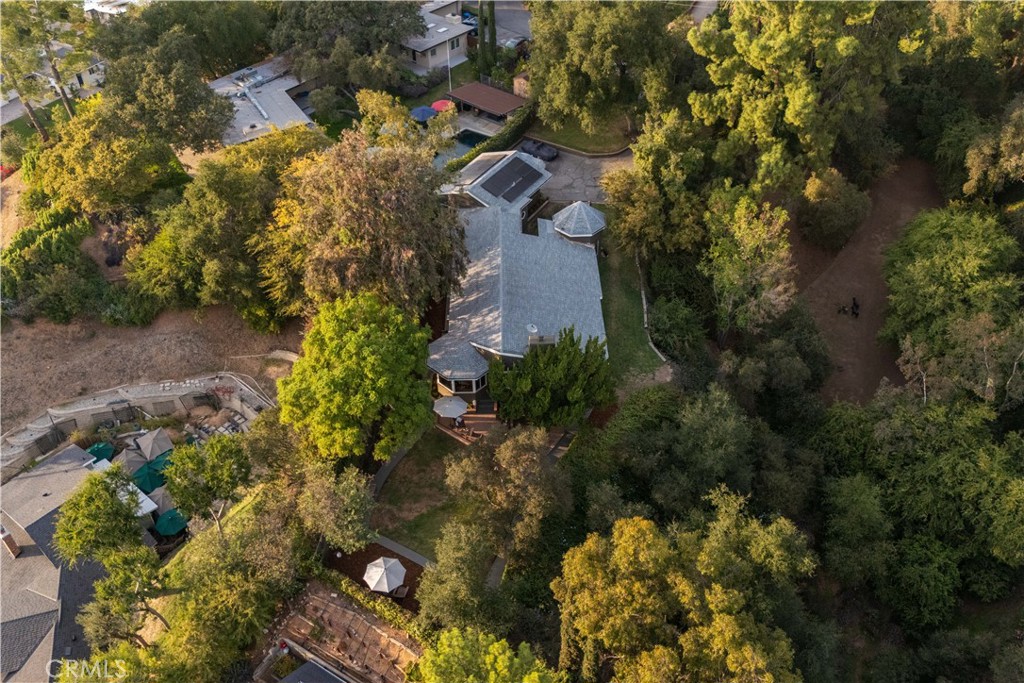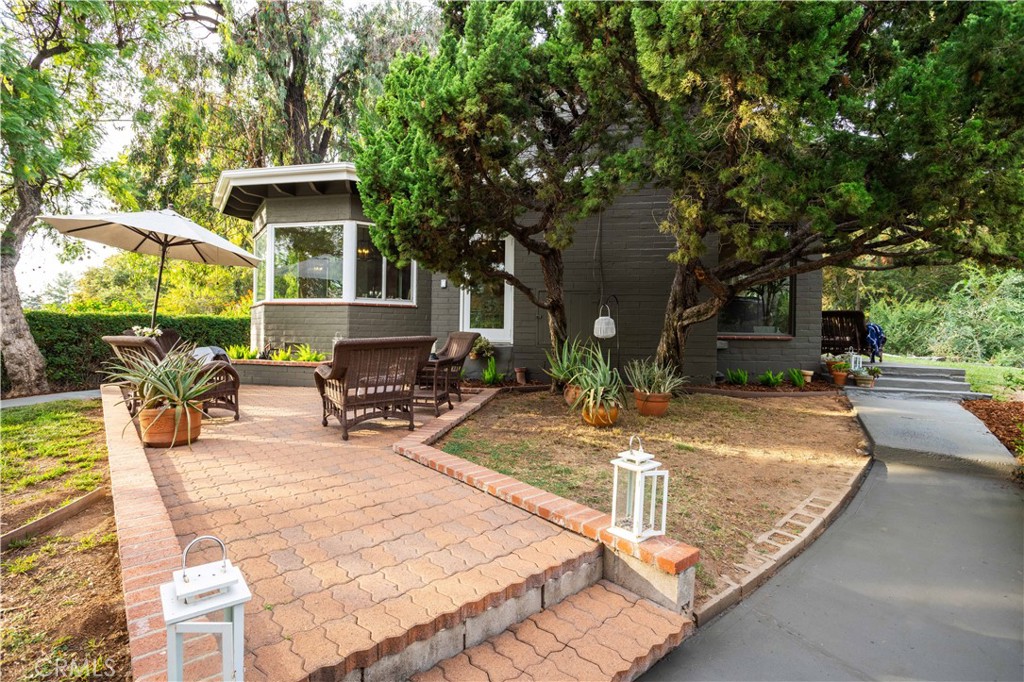 Calling all nature enthusiasts! This exceptional single-level home, set on a sprawling 39,250 sq. ft. lot in highly desirable North Monrovia, offers a rare combination of privacy, space, and modern efficiency. Sited behind a private fence and beautifully shaded by a mature oak tree, the property feels like a secluded retreat. The thoughtful, open floor plan is designed for both comfortable daily living and entertaining. Inside, you’ll find a formal living room and a spacious Great Room featuring a cozy fireplace, designated dining area, and walls of windows that perfectly frame the views of the lush, expansive grounds. The kitchen is appointed with ample Shaker-style cabinetry, granite countertops, and built-in appliances. The primary retreat is thoughtfully tucked away for maximum privacy, boasting a walk-in closet and an adjoining bathroom with a dual-sink vanity. Two additional bedrooms and a secondary bathroom, also featuring a dual-sink vanity and a separate tub and shower. The outdoor space is a true highlight, offering several patio areas ideal for entertaining – a blank slate perfect for installing a pool or realizing a variety of other outdoor visions as well as a large, flat pad accessible by a winding path. Additional amenities include wood flooring, central air and heat, a dedicated utility room, and recent interior and exterior painting. The home is an all-electric residence powered by an owned solar system, offering significant energy efficiency. Parking is plentiful with a detached 2-car garage featuring upper storage, plus several uncovered spaces. Experience the best of North Monrovia living in this unique, private setting.