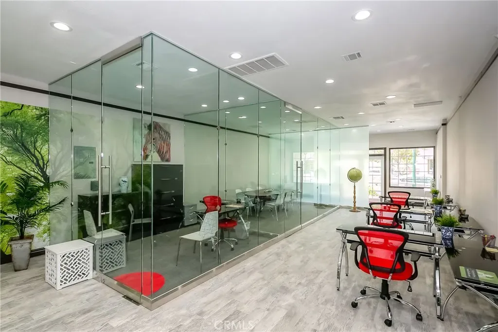 Suite 220 features high ceilings, marble flooring, professional receptionist counter and entry area, meeting room, large conference room with skylight, huge sales floor, two private executive offices, kitchen, storage room, and bathroom. Private parking in the back and plenty of free City parking lots. Building is earthquake retrofitted.