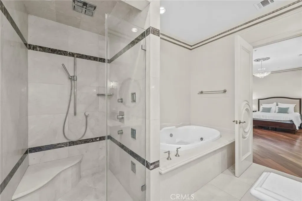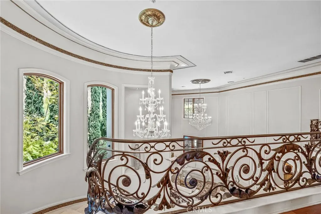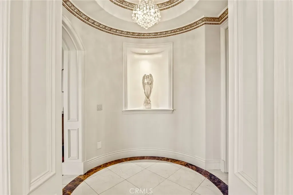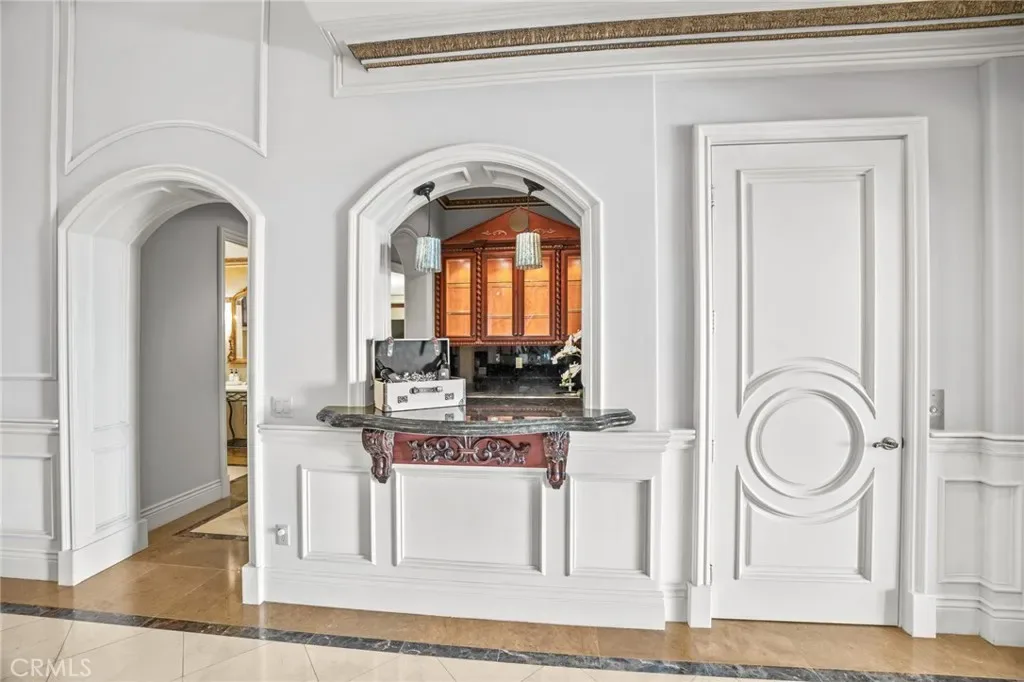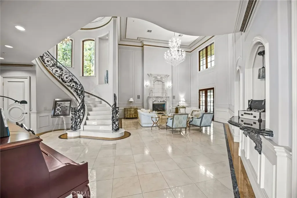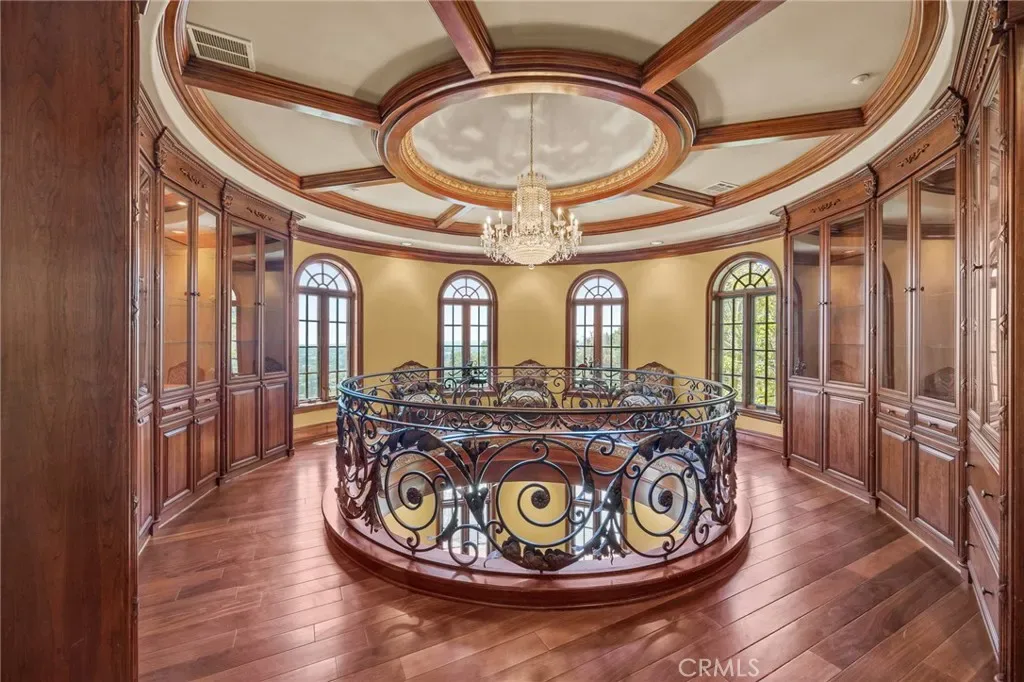 As you step through the custom glass and iron doors, the foyer unveils a world of opulence. The estate exudes grandeur, adorned with sparkling crystal chandeliers, exquisite marble floors, and ceilings that reach for the heavens. The state-of-the-art gourmet kitchen is a culinary enthusiast’s dream, equipped with two distinct prep areas: a Chinese Wok Style and a Japanese Teppanyaki Seafood Bar, meticulously crafted in Germany.