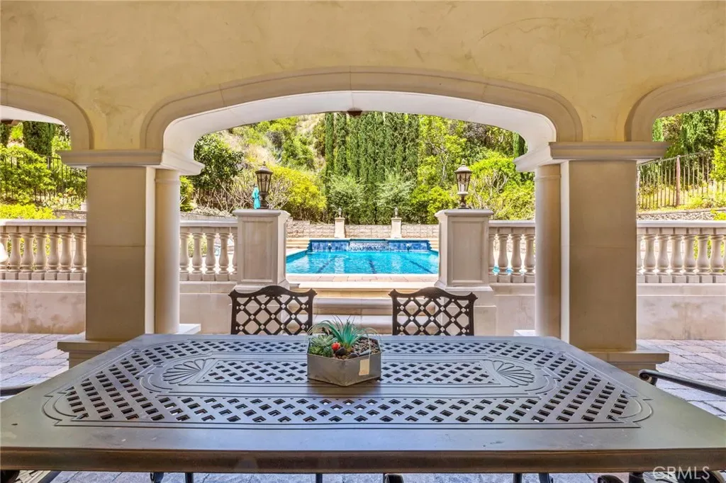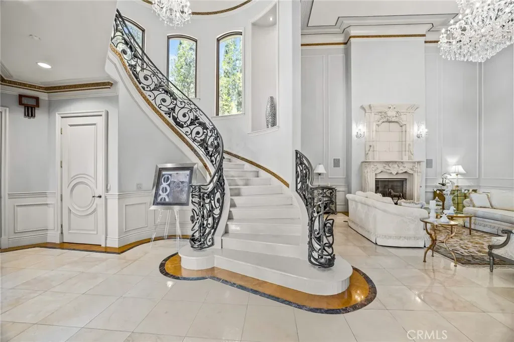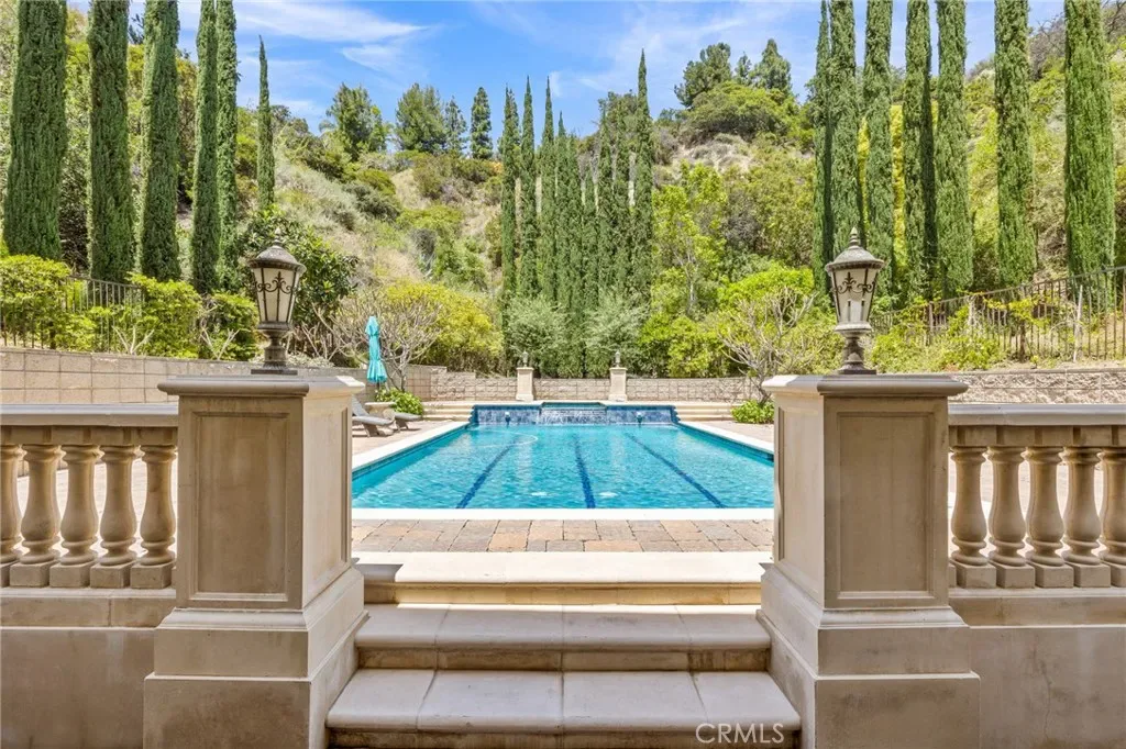 The first level of this palatial residence features a magnificent two-story circular library, an elegant formal living room with a cozy fireplace, a grand staircase that invites you to explore further, a family room with a fireplace to unwind in, a convenient laundry room, a bar area complete with a wine cooler, an elevator for seamless accessibility, a guest bathroom, a generously sized bedroom with an en-suite bathroom, and multiple patio areas beckoning you to bask in the serene ambiance. Among these outdoor spaces, one opens up to reveal a dazzling pool and spa, surrounded by majestic mountains that create an awe-inspiring backdrop. Ascending to the second floor, you will discover three stately bedrooms, each boasting its own bathroom adorned with jetted tubs for unparalleled relaxation. Expansive walk-in closets feature custom-built wooden organizers, catering to your every storage need. Private balconies offer a personal sanctuary, while a dedicated media room provides an immersive entertainment experience. For an unrivaled vantage point, step onto the magnificent covered balcony and revel in the awe-inspiring sunrises and sunsets that paint the sky in vibrant hues.