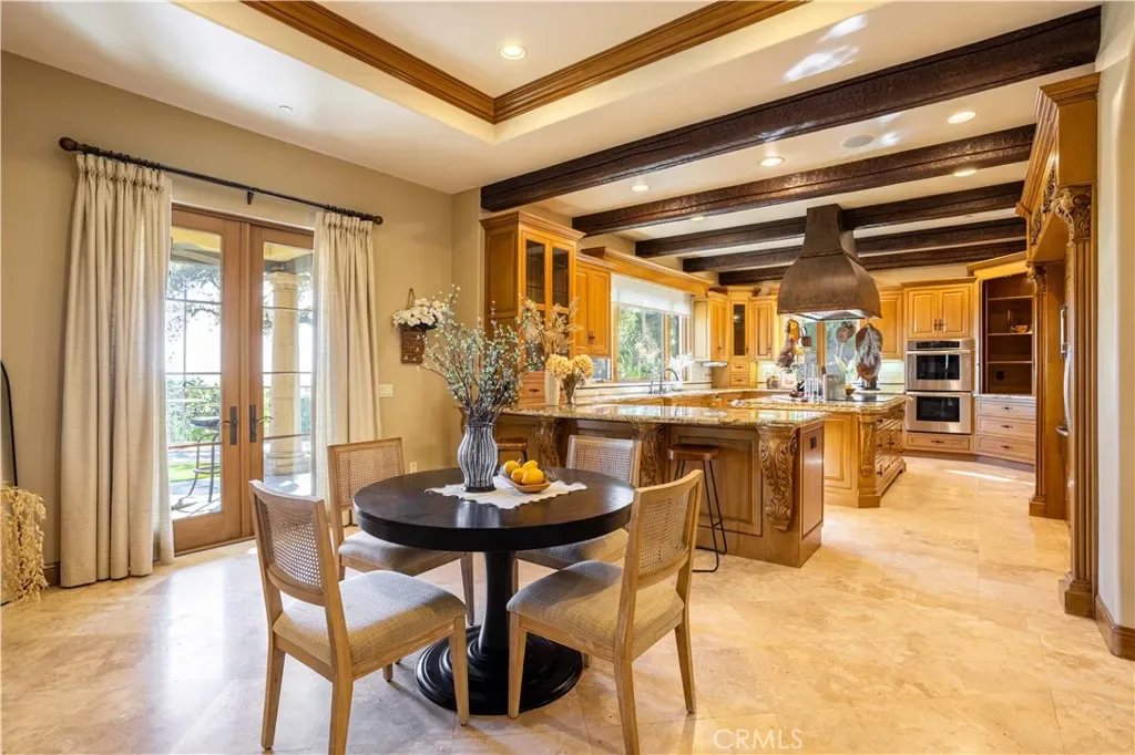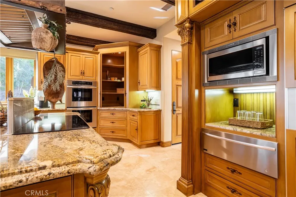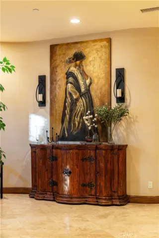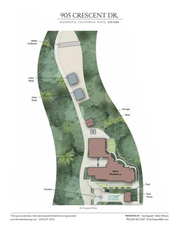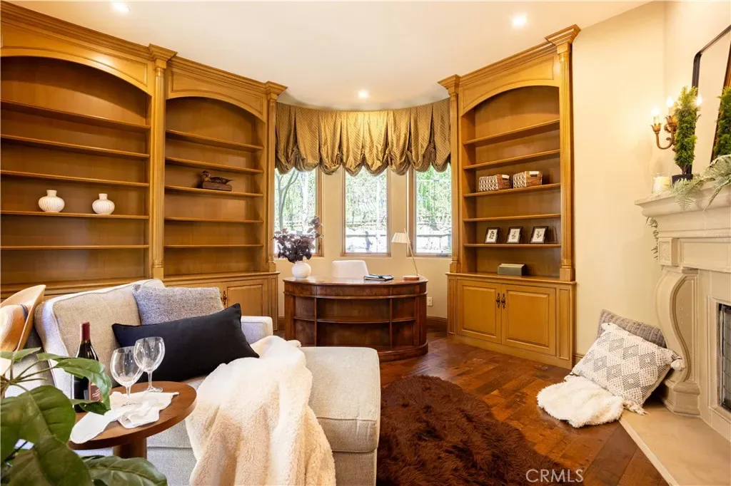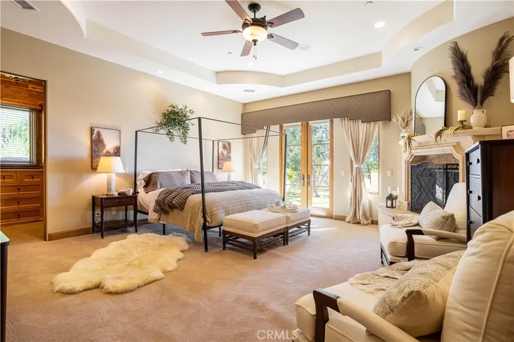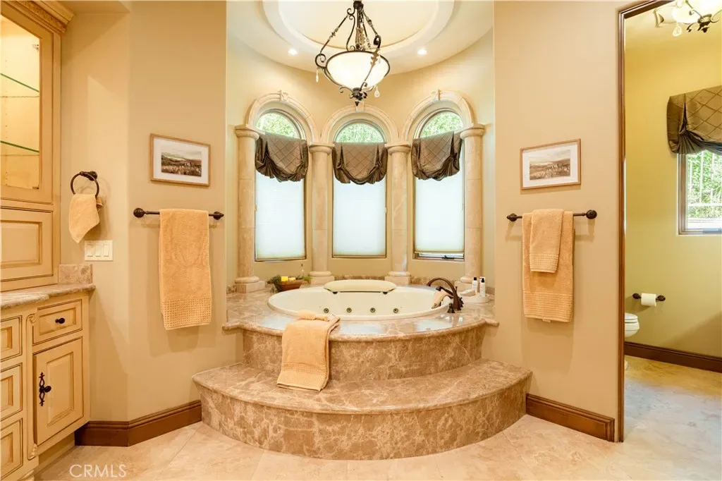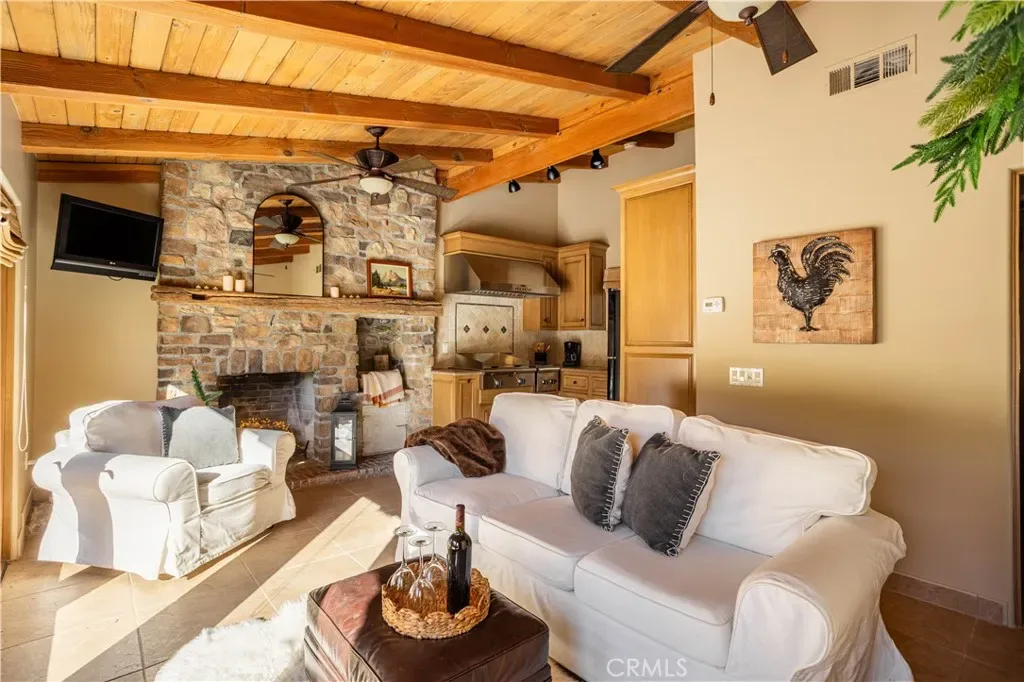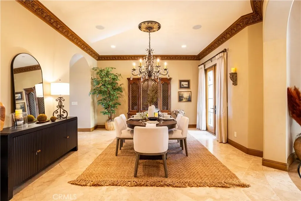 Perched majestically in the foothills of Monrovia, this one-of-a-kind Italian villa-inspired estate offers an unparalleled lifestyle defined by privacy, luxury, and sweeping city views. Sprawling across 13.12 acres, the property features a masterful 4,968 sq. ft. single-level main residence where architectural elegance meets seamless indoor-outdoor flow. The journey begins in a tranquil courtyard with a soothing fountain, leading through a grand foyer into a floorplan designed for sophisticated entertaining. The formal living room, marked by soaring vaulted ceilings and a massive stone double-sided fireplace, transitions into an expansive family room. This space is a connoisseur’s dream, equipped with a full wet bar, wine cellar, wine fridge, and built-in cappuccino machine. Both rooms feature French doors opening to a vast covered patio framing breathtaking vistas. At the heart of the home lies a chef’s kitchen, meticulously appointed with professional-grade appliances, double ovens, a warming drawer, and a large center island with a new cooktop. Granite countertops, custom cabinetry, and a walk-in pantry provide abundant storage, while the breakfast area and built-in desk offer everyday functionality. The kitchen flows gracefully into the formal dining room, perfect for large-scale gatherings. The primary suite is tucked privately at the rear of the home, featuring a fireplace, cedar-lined walk-in closet, and a spa-like bathroom with dual vanities, a soaking tub, and a multi-head steam shower. Three additional bedrooms, two full bathrooms, and two powder rooms ensure comfort, while a dedicated office with built-in bookcases provides a quiet workspace in a private wing. Beyond the main residence, a 2,164 sq. ft. vehicle storage garage with an integrated workshop is topped by a charming 895 sq. ft. upper-level apartment. This guest unit includes a balcony, full kitchen, and two bedrooms, with infrastructure for an elevator. The lower tier is an entertainer’s paradise, featuring a sparkling pool, outdoor fireplace, and a 520 sq. ft. pool house with its own kitchen, living area, bedroom, and bath. This estate is rounded out by a solar system, multi-zone HVAC, and a whole-house vacuum, offering a rare blend of Mediterranean inspiration and modern efficiency.