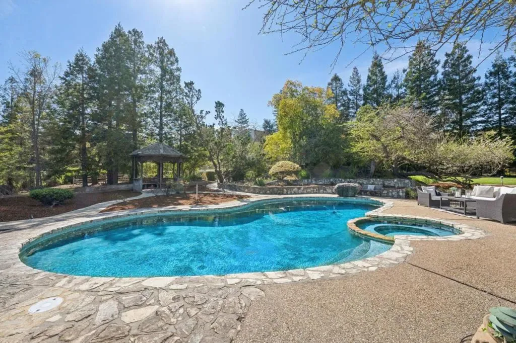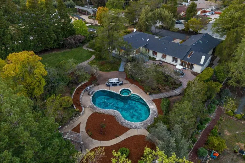 Sprawling single story in great location on Daves Ave! Expansive grounds of over 1 acre, level and very private with in-ground pool, spa, large lawn area & orchard. Freshly painted exterior opens to a spacious interior with large living room w/ new carpet & generous formal dining room looking over front grounds. Marble entry and lovely cherry wood hardwood floors through dining room & kitchen. Spacious kitchen has cherry cabinetry, dining nook and center island with bar height seating. Prof grade appliances and lovely granite counters. Half bath & laundry just beyond. The family room w/ new carpet overlooks the rear grounds and pool area. Two wings both with 2 bedrooms each. The primary suite enjoys a large walk-in closet & generous bath plus. Second en-suite bedroom w/ hardwood floors can be a great office. 2 additional bedrooms share hall bath. Multiple sliders open to rear grounds. So much room to expand if desired. A large access point to rear yard sets up perfect for an ADU with separate entrance. Top Los Gatos schools and well-regarded Daves elementary is down the street! Easy access to hwy 85! Such potential to expand this estate or enjoy as -is!