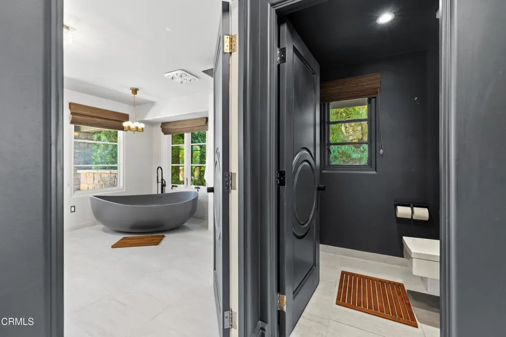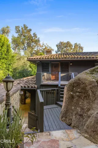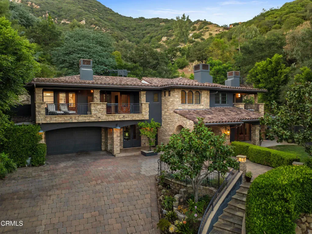 Perched in the foothills of Montecito, this custom-built 2010 Mediterranean villa blends Old World charm with modern luxury. Set behind a gated entrance and a stunning stone pathway with wrought-iron railing, the 3,272 +/- sq. ft. residence gazes across treetops to the Pacific Ocean. Thoughtfully sited for indoor/outdoor living, the home offers three ensuite bedrooms, four bathrooms, and a large two-car attached garage. Through a graceful stone arched entry, the first floor welcomes you into a great room anchored by a gourmet chef’s kitchen with top-of-the-line stainless appliances, an extra-large island with breakfast bar, and an open dining/family area with a cozy fireplace. Porcelain tile floors, soaring beamed ceilings, and French doors create seamless flow to covered stone loggias, patios, and a generous outdoor stone BBQ area with two grills and cooktop. Additionally, on the first floor is a full bathroom and a versatile room with fireplace that serves as an ideal office or cozy den. Upstairs, beautiful wood floors lead to three ensuite bedrooms – all complimented with stunning loggia views, and a convenient laundry room with tiled counters and abundant storage. The primary suite features a quaint desk/office nook, fireplace, and a gorgeous updated bath with freestanding tub, glass-free walk-in shower, and tile flooring. The adjacent stone loggia spans bedroom to bath with sweeping ocean and hillside vistas. Two additional en-suites share a spacious loggia; the farthest bedroom includes extra water hookups and direct backyard access–ideal for guest quarters. Outside, winding stone pathways traverse lush native landscaping to a pergola with panoramic views, a stone court with basketball hoop and fire pit, vegetable gardens and a chicken coop, plus a recently finished detached structure adaptable as a gym, sauna or office. Located in the Cold Spring School District, this Montecito foothills villa combines timeless Mediterranean details – stucco facades, terra-cotta tile roof, stone loggias and arched entries – with contemporary finishes and a design that celebrates coastal indoor/outdoor living.