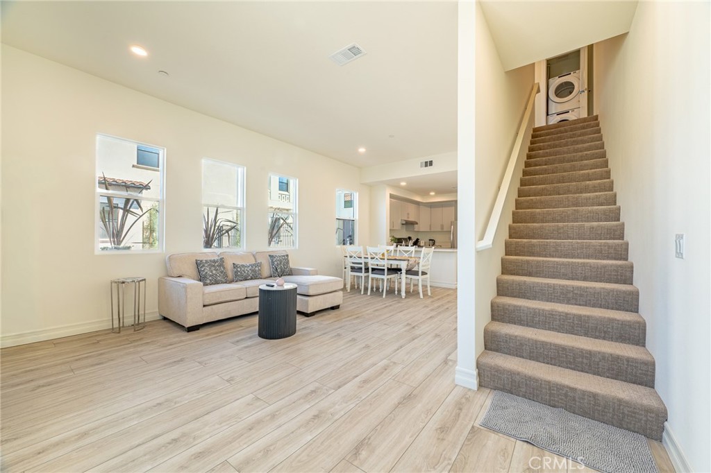 The home offers a bright and open living space across the first and second floors, creating a perfect balance of privacy and functionality. The spacious living room flows seamlessly into the dining area and kitchen, making it ideal for everyday living and entertaining.