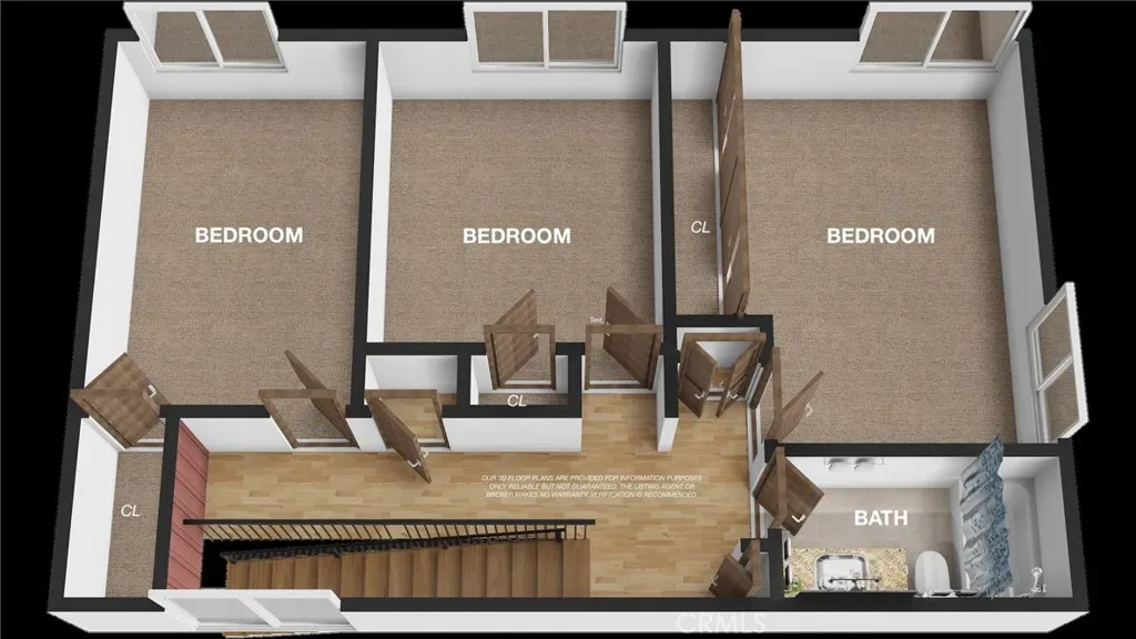 Two-story with 3 bedrooms and 1.5 bathrooms. Features central A/C and an additional wall A/C. The main level offers a bright living room with fireplace, laminate flooring, and sliding doors leading to a deck and private yard. The kitchen includes granite countertops, ample cabinetry, and a breakfast nook. A powder room and under-stair storage add convenience. Upstairs offers three bedrooms and a full bath with skylight.