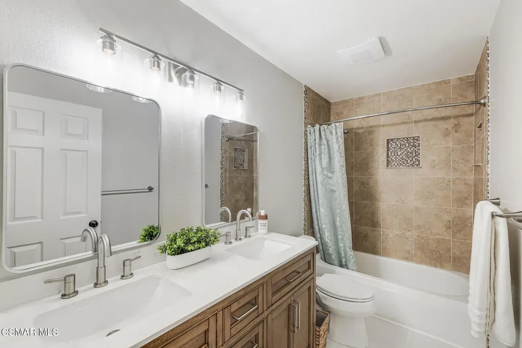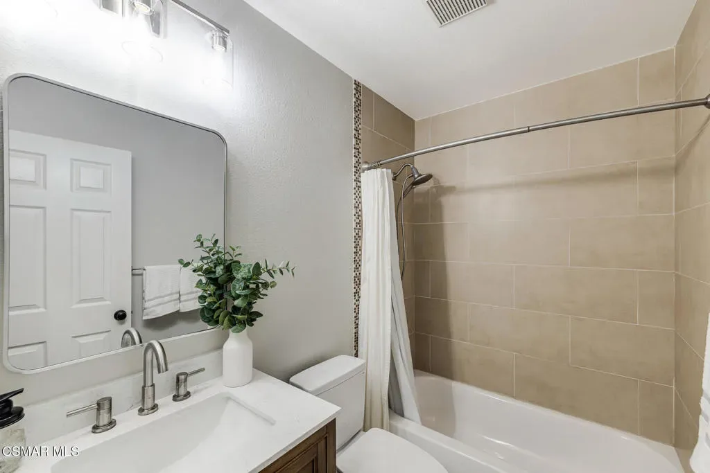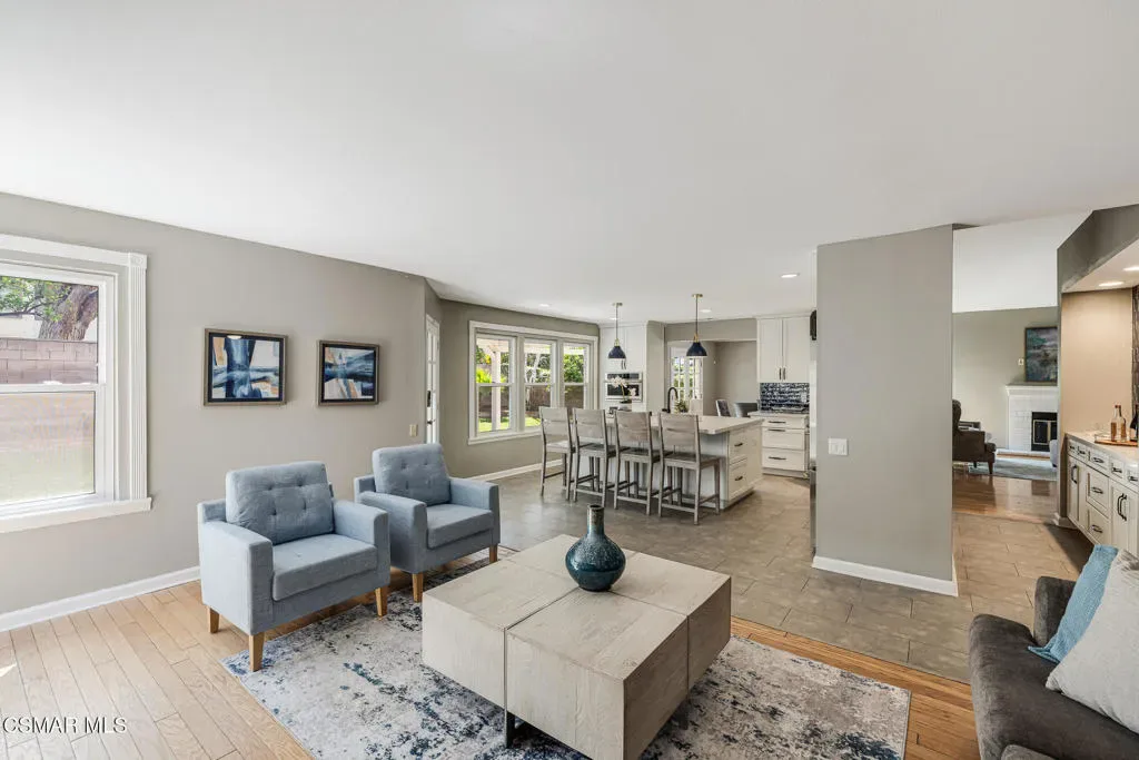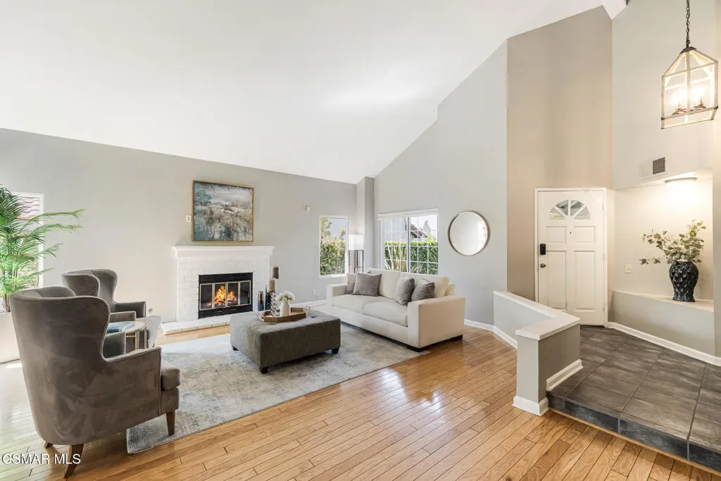 Welcome to The Willows, one of Moorpark’s most sought after communities, where tree lined streets and a welcoming neighborhood setting create the perfect place to call home. Ideally located near Moorpark High School and Mountain Meadows Elementary, this beautifully upgraded four bedroom, three bath home offers 2701 square feet of comfortable living with soaring vaulted ceilings and an abundance of natural light throughout. The remodeled kitchen is the heart of the home, featuring a stunning oversized quartz island, stainless steel appliances, a designer tile backsplash, generous seating, and abundant storage, perfect for everyday living and entertaining. All bathrooms have been thoughtfully updated with a fresh designer look, while a desirable downstairs bedroom adds flexibility for guests or a home office. Upstairs, you will find two spacious secondary bedrooms along with a luxurious primary suite complete with a sitting area, expansive dual walk-in closets, and a beautifully reimagined bath that reflects both comfort and elegance. The home also features a thoughtful blend of real hardwood flooring, plush carpeting on the stairs, and durable luxury plank vinyl throughout. Additional highlights include double pane windows, upstairs laundry, and a three-car garage. Enjoy summer days at the community pool and spa just moments away, making this not just a home but a lifestyle you will be glad to call your own.