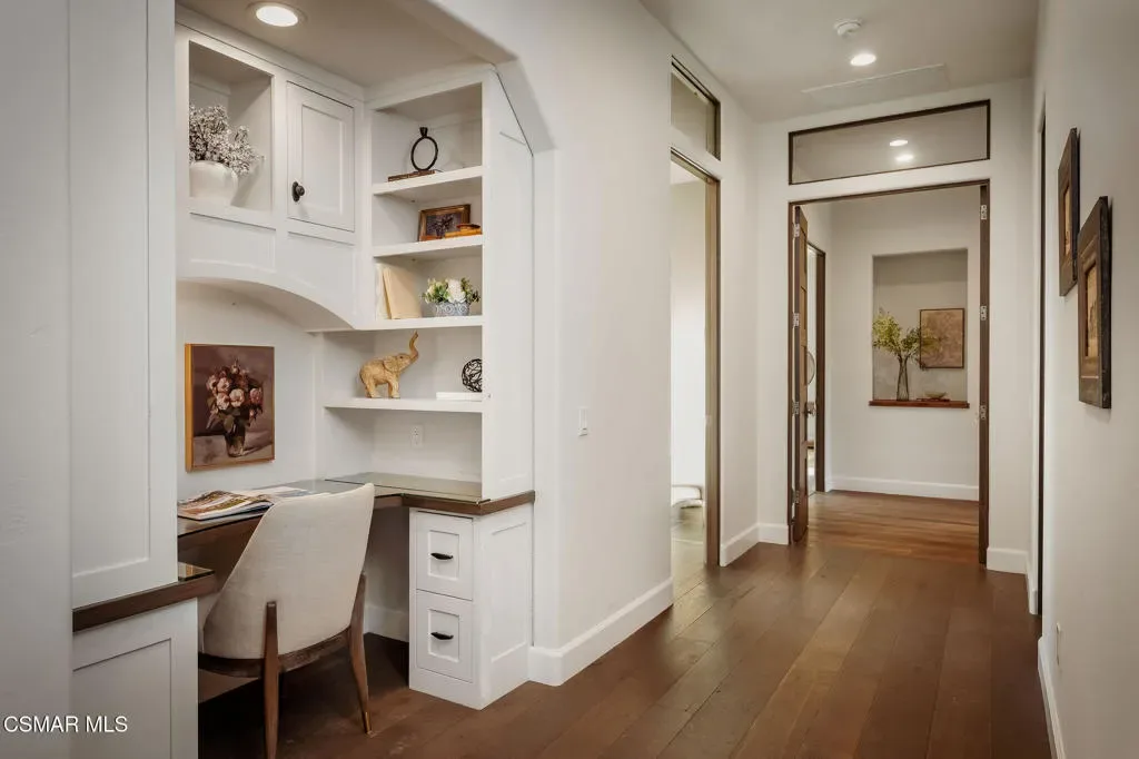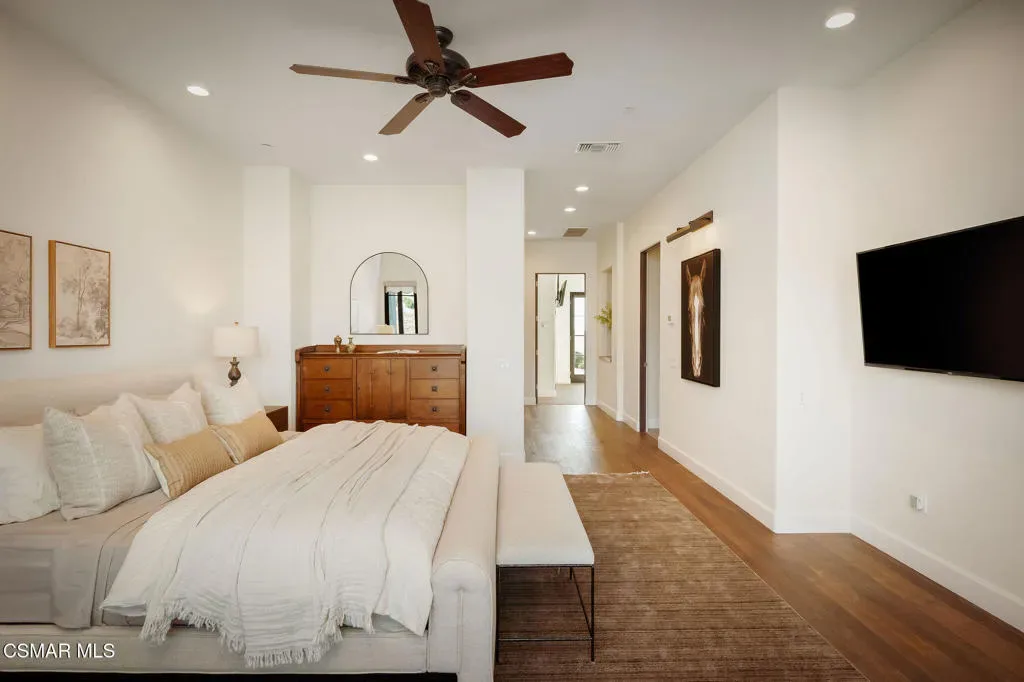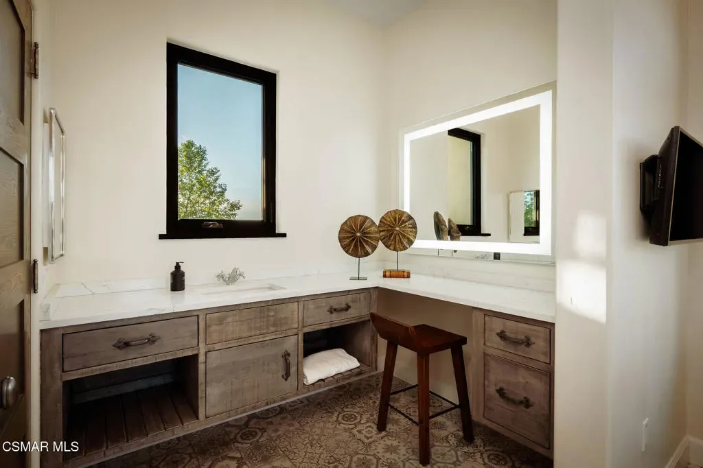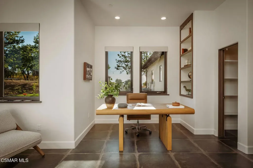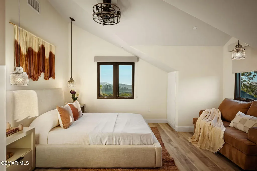 Lapeyre Ranch, an incredible opportunity in Moorpark… and this one is truly something special. Set across 10 acres of rolling, usable land, 15645 Lapeyre Road offers a rare and compelling blend of modern farmhouse living, income producing agriculture and fully realized equestrian amenities; all framed by sweeping views and endless open sky.Privately positioned at the top of the property, the newly refreshed 4,937 square foot residence captures breathtaking panoramic vistas from nearly every angle. Designed in a warm, modern farmhouse aesthetic, the home features expansive open concept living spaces, wide plank wood floors and beautiful exposed beams that create both volume and intimacy. The heart of the home is a stunning chef’s kitchen, complete with a large center island, custom cabinetry, statement range and sunlit breakfast area. All seamlessly connected to the main living and dining spaces for effortless entertaining.Walls of windows and doors open to an inviting outdoor setting, where a built in BBQ, firepit lounge, and multiple seating areas overlook the surrounding orchards, barn and distant hills; creating the ultimate indoor/outdoor lifestyle.With 8 bedrooms and 3.5 baths, the home offers incredible flexibility for extended family, guests or a live/work dynamic.Beyond the residence, the property unfolds into a truly special ranch environment. Approximately 1,600 flourishing avocado trees and 425 Tango tangerine trees provide meaningful income potential, while the equestrian facilities are both functional and thoughtfully designed. A classic red barn with oversized stalls and corrals sits alongside a large riding arena, ideal for recreational riding. In addition, a substantial 40′ x 60′ detached shop/garage provides exceptional space for equipment, vehicles, storage, or all of your ranch needs–an incredibly valuable and versatile addition to the property.A private swimming pond with dock adds a rare and tranquil element, offering a peaceful retreat and a true connection to the land. Gently sloping acreage, mature landscaping and wide open space create a setting that feels both expansive and serene.This is a privately gated property where lifestyle, land and opportunity come together seamlessly. Whether you’re seeking a working ranch, an equestrian retreat or a private estate with income producing potential….15645 Lapeyre Road is more than a home… it’s a destination.