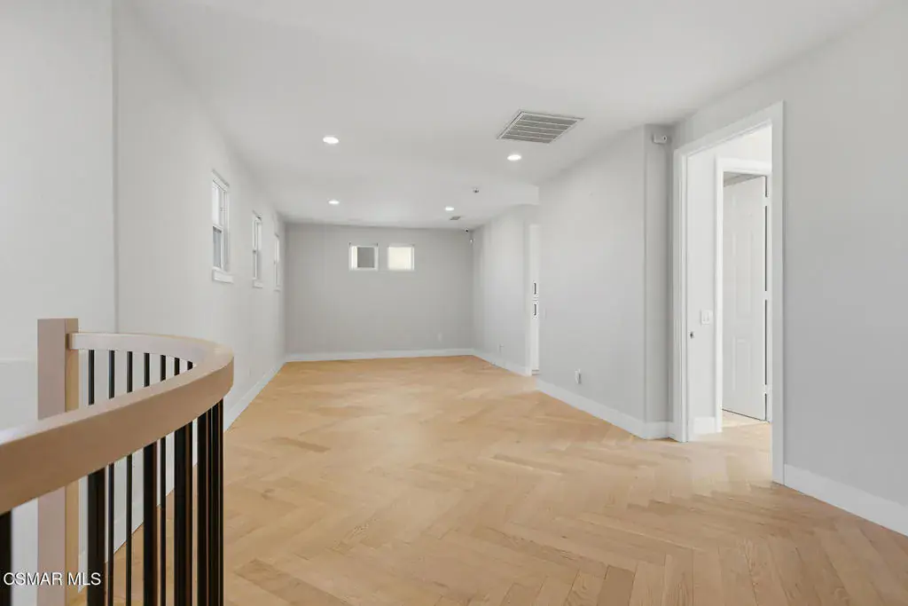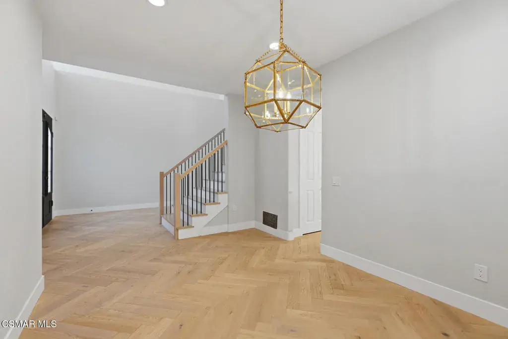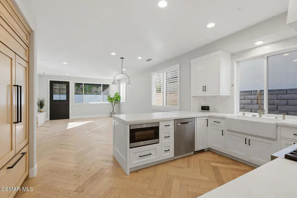 Tucked away on a quiet cul-de-sac in the gated Cantara community of Moorpark, 4630 Rio Bravo offers a thoughtfully updated home blending timeless design with modern comfort. Spanning approximately 3,307 sq ft, the residence features French oak flooring in a herringbone pattern, custom millwork, built-ins, and abundant natural light. The flexible floor plan includes 4 bedrooms and 4.5 bathrooms, highlighted by a main-level primary suite with a spa-inspired bath, soaking tub, walk-in shower, and custom walk-in closet. A downstairs guest suite is ideal for visitors or a home office, while upstairs offers two additional en-suite bedrooms and a spacious bonus room. The kitchen serves as the heart of the home with custom cabinetry, premium appliances, generous prep space, and seamless flow to the living and dining areas. Dramatic lighting, custom fireplace surrounds, and a striking staircase add architectural character throughout. The private backyard features paver hardscape and a smart patio cover, creating an inviting space for outdoor dining and year-round enjoyment. Ideally located near parks, shopping, dining, and top Moorpark schools, this home offers custom-quality finishes, a versatile layout, and an exceptional setting.