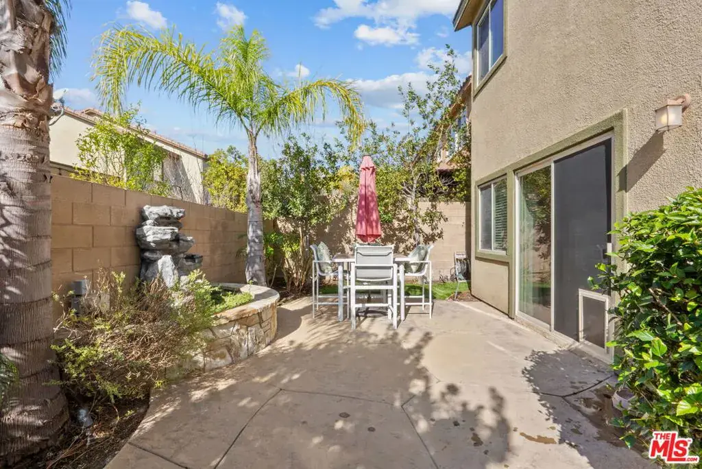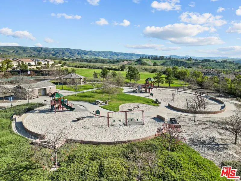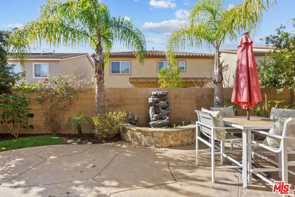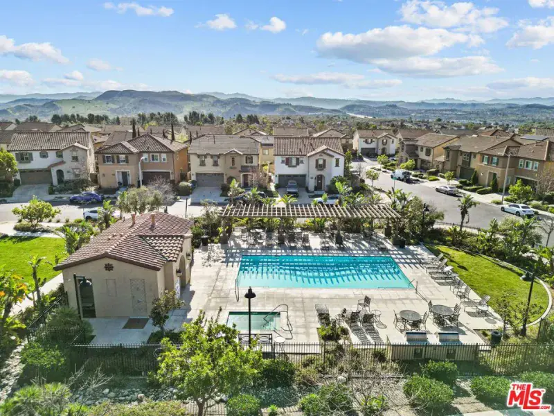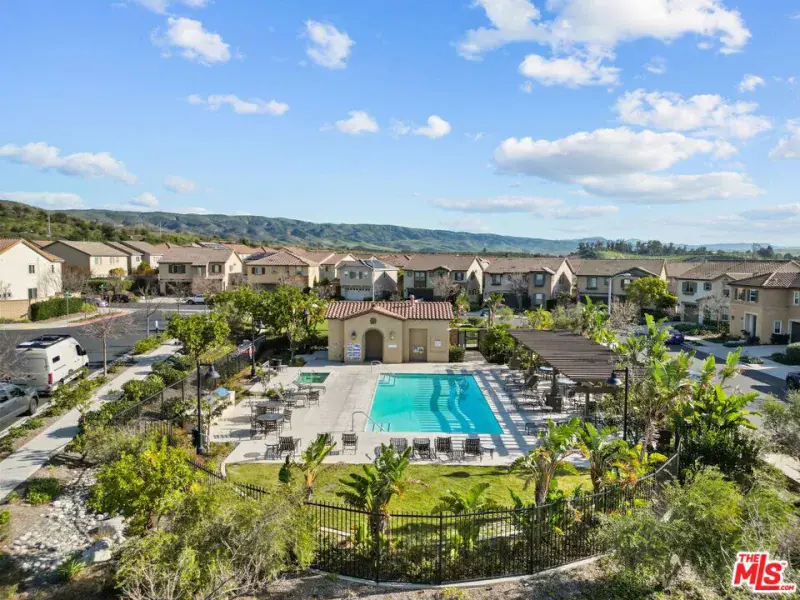 Welcome home to Living Smart Homes in Moorpark Highlands, located in one of Moorpark’s most desirable master-planned communities. This charming two-story 4-bedroom, 2.5-bath home is surrounded by lush greens and beautiful mountain views. Step inside to a welcoming entry where high ceilings, crown molding, recessed lighting, rich wood floors, and natural sunlight set the tone. The space opens into an elegant formal living and dining area perfect for entertaining. The kitchen floor plan blends well to the family room, creating an ideal open-concept layout. The kitchen features rich cabinetry, granite countertops, custom tile backsplash, a large center island with bar seating, pendant lighting, stainless-steel appliances, and a modern touch-activated faucet for added convenience. The adjoining family room offers a comfortable gathering space with a sliding glass door to the backyard for effortless indoor-outdoor living. Additional features include direct access to the attached garage, central heating and air conditioning for year-round comfort, dual-pane windows for energy efficiency, ceiling fans and thoughtful finishes throughout. As you make your way upstairs, you arrive at a spacious landing. This versatile space connects all bedrooms, a full bathroom, and a large laundry room for added convenience. The primary suite serves as a private retreat, offering generous space, a walk-in closet, and an ensuite bathroom with dual vanities, a soaking tub, and a separate glass-enclosed shower, creating a spa-like atmosphere. Backyard highlights include stamped concrete, mature palms, a decorative water feature, an orange tree, and a built-in natural gas BBQ hookup for effortless outdoor entertaining. A side yard provides added versatility for pets or storage. The Moorpark Highlands community offers resort-style amenities including a pool, spa, scenic trails, and access to Mammoth Park, featuring 7.5 acres of play areas, multi-use fields, picnic spaces, and lighted tennis and sport courts. Conveniently located near shopping, dining, award-winning schools, and freeway access, this home is nestled in a highly desirable, family-friendly neighborhood.