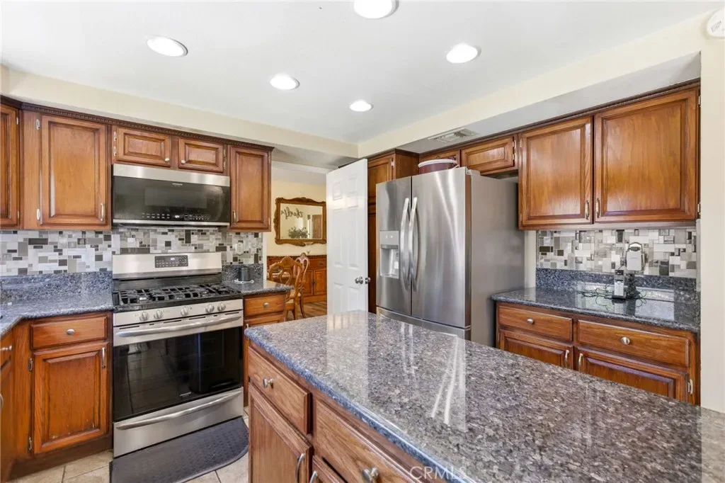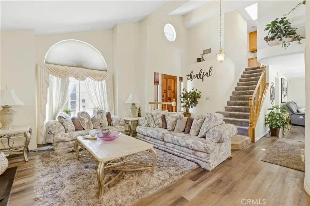 Welcome to 10649 Village Road in Moreno Valley — a spacious two-story home located within the desirable Sunnymead Ranch community. Featuring four bedrooms and three bathrooms, this home offers approximately 2,002 square feet of living space on a 5,663 square foot lot, combining comfort, functionality, and a well-designed layout. As you enter, you’re greeted by tall ceilings and a bright living room with laminate wood-like flooring, a cozy fireplace, and large windows that fill the space with natural light. The layout flows seamlessly into the dining area, creating an open and inviting atmosphere. Just off the main living space, the kitchen features granite countertops, oak cabinetry, stainless steel appliances, and a center island. A window above the sink brings in additional light, and the kitchen opens to the family room, which includes a second fireplace and sliding glass doors leading to the backyard. Downstairs includes a full bathroom with a stand-up shower and granite countertops, offering convenience for guests or multi-generational living. Upstairs, you’ll find all four bedrooms, each with ceiling fans and neutral white walls. The primary suite includes dual sinks and a functional layout, while the additional bathroom features tile flooring, white countertops, and gold-tone fixtures. The backyard offers a combination of grass and a concrete pathway, providing a low-maintenance space with room to relax or entertain. As part of Sunnymead Ranch, residents enjoy access to a private lake, pool, spa, clubhouse, fitness center, and scenic walking paths — adding to the lifestyle and value this community provides. Conveniently located near local schools, shopping, dining, and parks, this home is a great opportunity to own in one of Moreno Valley’s most established neighborhoods.