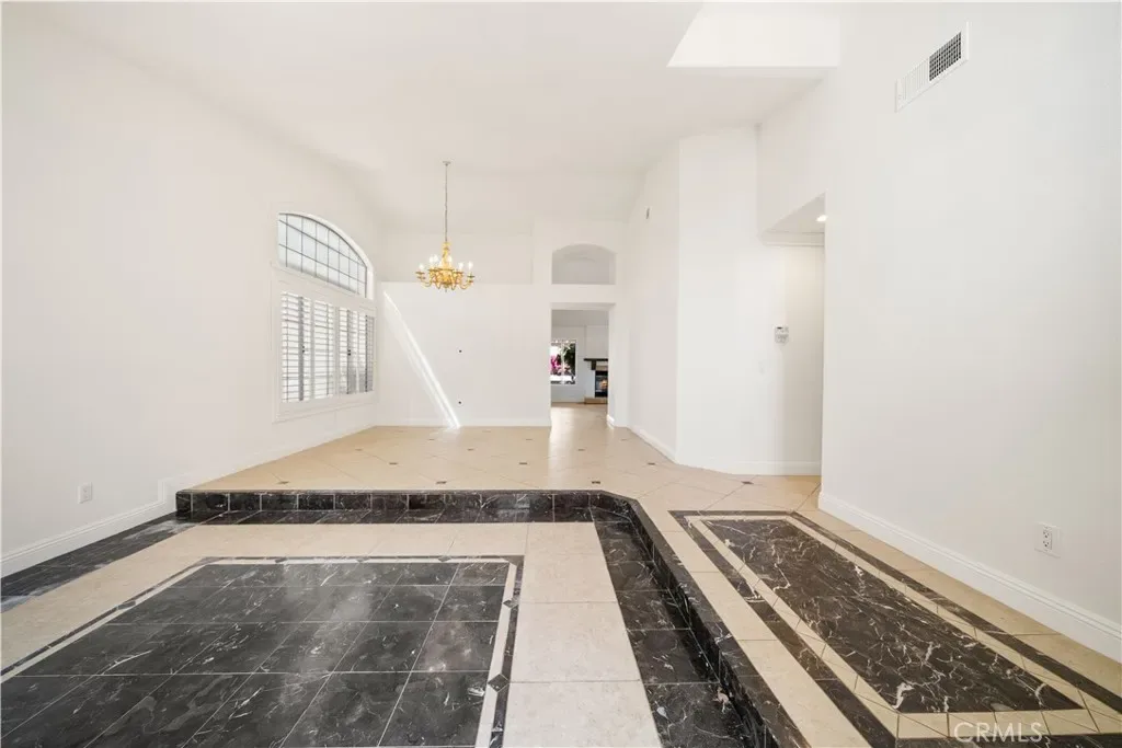 This 3-bedroom, 2-bath residence features an open floor plan with high ceilings and abundant natural light. The living, dining, and kitchen areas are connected, providing a functional layout for everyday living. the kitchen includes updated cabinetry, countertops, and a center island. The primary suite offers a spacious layout and a private bathroom that is generously sized and includes a skylight, creating a bright and open feel.