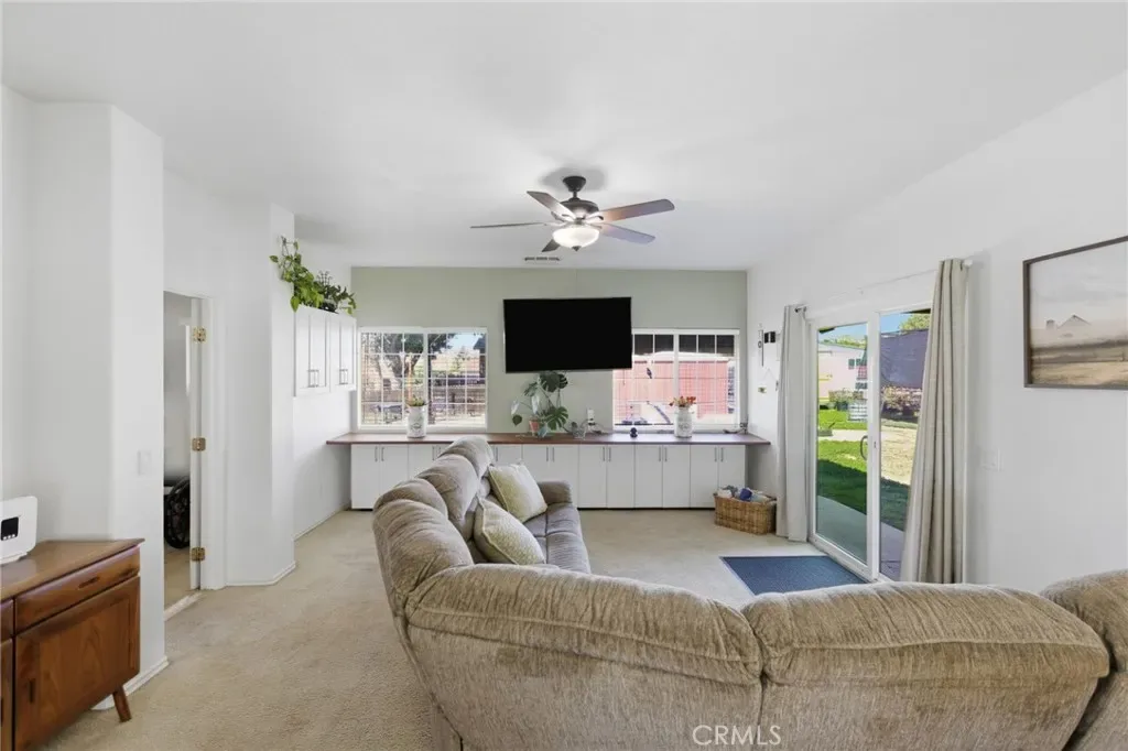 Welcome to 12471 Sage Grouse Ln., Moreno Valley — a rare single-story ranch-style home located in North Moreno Valley on a quiet street, situated on an expansive 20,000+ sq ft lot. This 4-bedroom, 3-bathroom home offers approximately 2,010 sq ft of living space and a versatile layout ideal for multigenerational living. One of the standout features of this property is the permitted additional primary suite, thoughtfully designed with accessibility in mind and featuring its own private living area, walk-in shower, and walk-in closet, making it perfect for extended family or guests. As you enter the home you are welcomed by a spacious living room, large dining area, and a kitchen overlooking the backyard with ample cabinet and counter space, while the family room offers built-in storage and a comfortable gathering space. On the opposite side of the home you will find three additional bedrooms including the main primary bedroom with its own bathroom. The home also features a couple separate AC units allowing for independent climate control and energy efficiency between different areas of the home along with central A/C and heating. Outside, the property truly shines with incredible space and functionality including RV parking in both the front and backyard with RV hookups, a three-car attached garage, plus an additional two-car detached garage in the backyard perfect for extra vehicles, storage, recreational toys, or a workshop. The front of the home allows parking for numerous vehicles while the expansive backyard offers patio space and endless possibilities for landscaping, entertaining, or adding a pool. Additional highlights include PAID OFF solar with 14 panels installed in 2022, a well-maintained septic system, abundant windows and high ceilings throughout, single-story living with no stairs, and a low tax area with no HOA. Conveniently located near schools, shopping, and freeway access, this home offers space, flexibility, and incredible potential for buyers looking to make it their own. Schedule your private viewing!