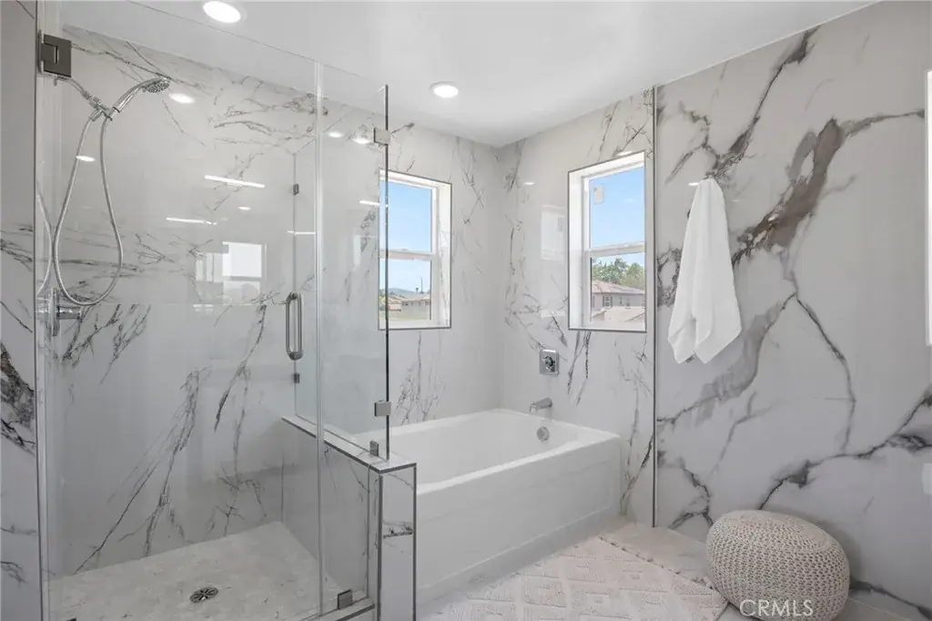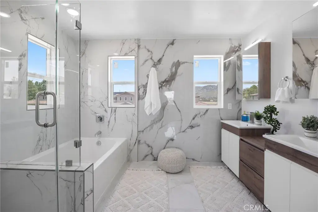 Upstairs, the wow factor continues with a dramatic glass-railed staircase leading to three spacious bedrooms, two luxe bathrooms, and a dedicated laundry room. The primary suite is a true showstopper with a custom walk-in closet and a spa-like bathroom featuring a European-style shower and elegant finishes. Designed for year-round comfort, the home features a high-efficiency 3-zoned HVAC system, keeping every room perfectly climate-controlled. And let’s not forget the stunning tile roof, adding durability and timeless curb appeal.