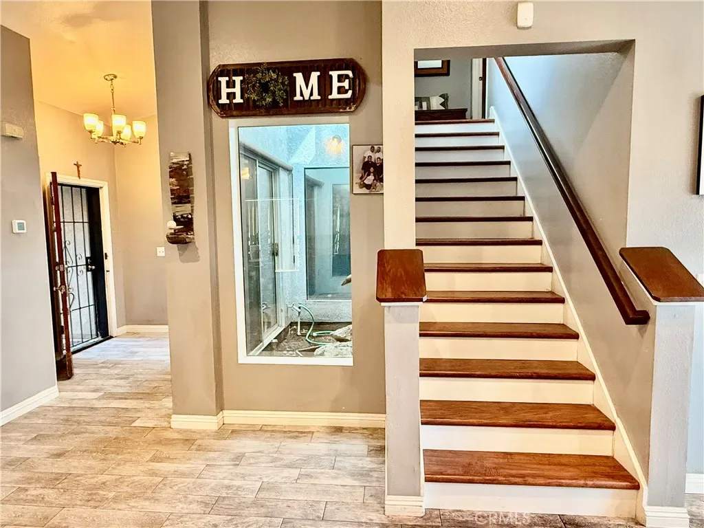 Very well-maintained 3-bedroom, 2-bathroom pool home with interior atrium, YES Interior Atrium in home, located in a desirable Moreno Valley neighborhood. This inviting home features a beautifully remodeled kitchen, ceramic tile flooring throughout the downstairs, and laminate flooring upstairs. A convenient full bathroom is located on the main floor.