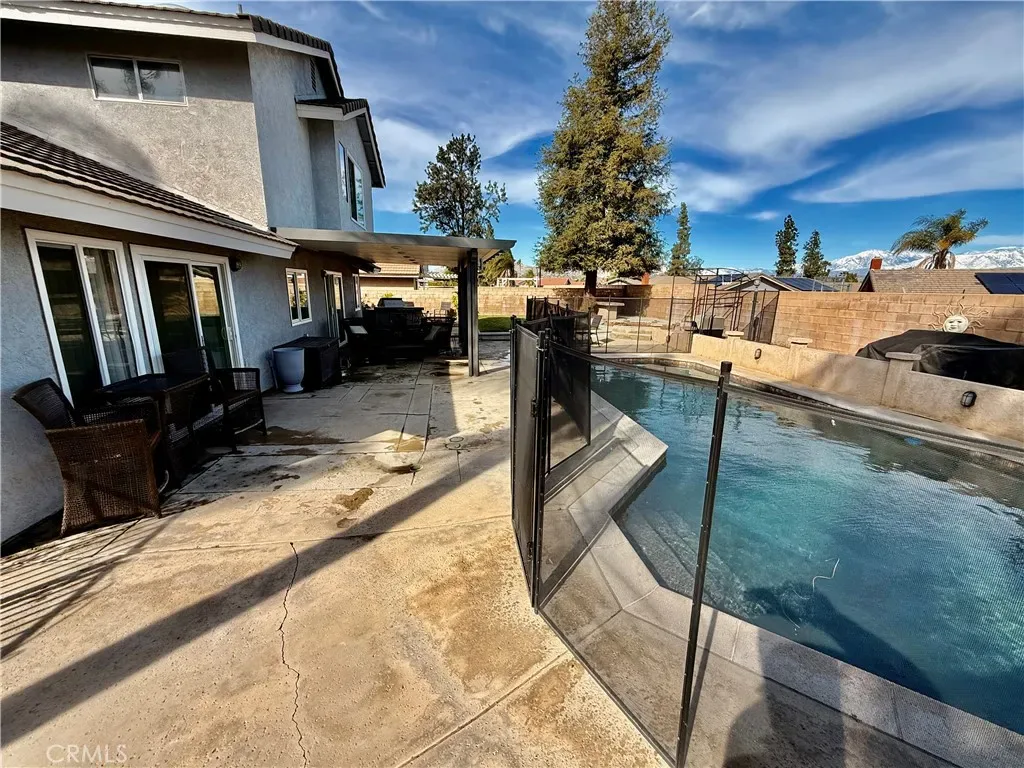 The cozy living room includes a charming fireplace—perfect for relaxing on chilly evenings. Step outside to the backyard oasis featuring an Alumawood covered patio, a good-size play pool, and BBQ area—ideal for entertaining family and friends.