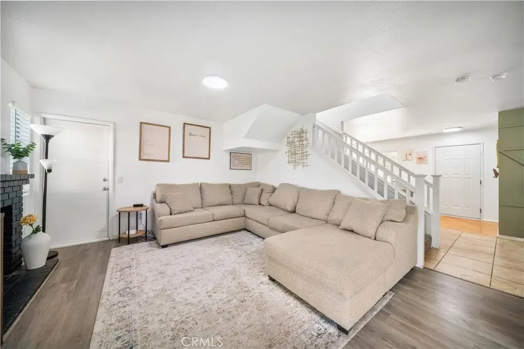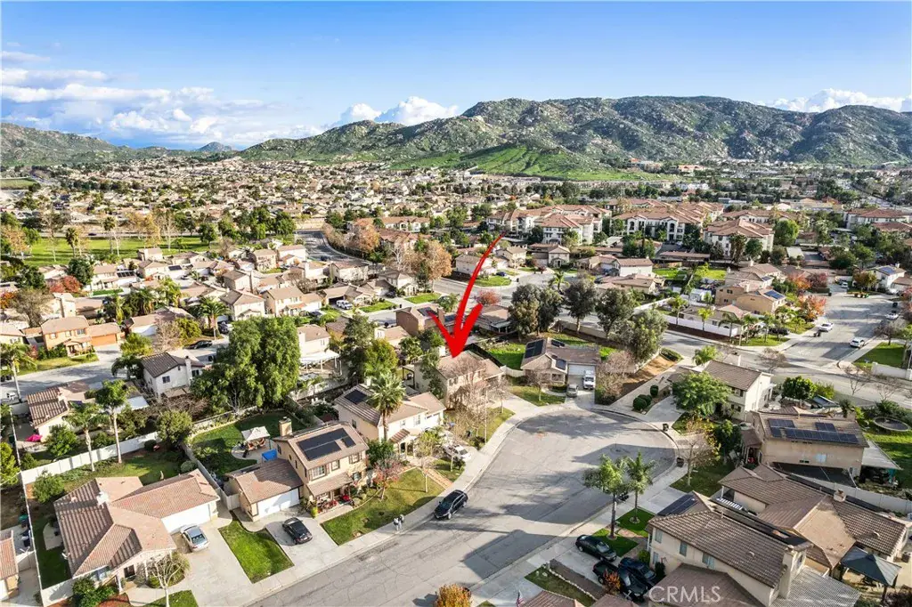 Situated in a quiet Moreno Valley cul-de-sac, this 2000-built home maximizes function and flow. The standout layout features two distinct living areas: a tiled front lounge perfect for a media room or office, and a separate family room anchored by a black brick gas fireplace and wood-style flooring.