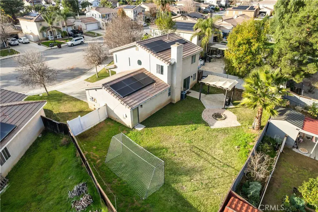 Outside, the 6,098 sq. ft. lot shines with a lush green lawn, low-maintenance vinyl fencing, and a dedicated fire pit area. The included backyard gazebo creates an instant outdoor dining room. Complete with a leased solar system for energy efficiency, this home is move-in ready.