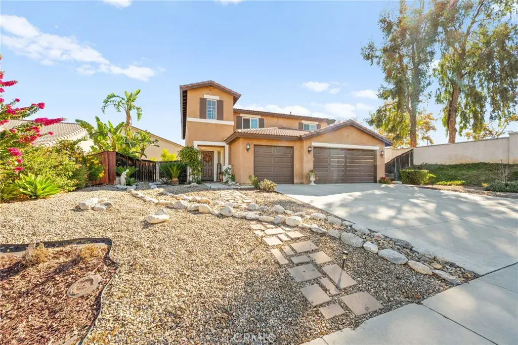 Nestled in a tranquil Moreno Valley, California neighborhood, this charming home exudes warmth and love. Its design and well-appointed details stand as a testament to comfort and style. The exterior features a manicured front and welcoming facade that sets the tone for what lies within. Upon entry, discover a spacious front room with vaulted ceilings. The floor plan seamlessly connects, creating an inviting space for family gatherings and entertaining both indoors and out. The kitchen showcases caramel colored cabinets with a granite top island. Journey through this thoughtfully designed home to find 5 generously sized bedrooms, each offering comfort and space. First floor includes 1 bedroom, bathroom with a shower, which can function as a separate suite.The master retreat includes a spacious closet and luxurious en suite bathroom. The retreat area also includes an additional space that can be used as a home office or a cozy spot to relax by the fireplace. Outside, the backyard is a haven for all ages. A large, well-maintained rock bed offers a serene escape for relaxation. This backyard oasis is ideal for family barbecues, outdoor games, or simply enjoying sunny California weather. Safety is a top priority in this beautiful neighborhood, offering peace of mind to residents. The sense of community, combined with well-kept surroundings, creates a welcoming atmosphere for families. Meticulously considered details blend comfort, functionality, and the joys of family living. Enjoy an array of shopping, dining, and entertainment options moments away. With low taxes and no HOA fees, this gem of a home is sure to capture your heart. Don’t miss this extraordinary opportunity – schedule your showing today before it’s gone!