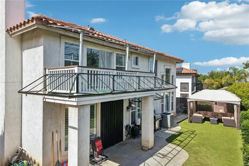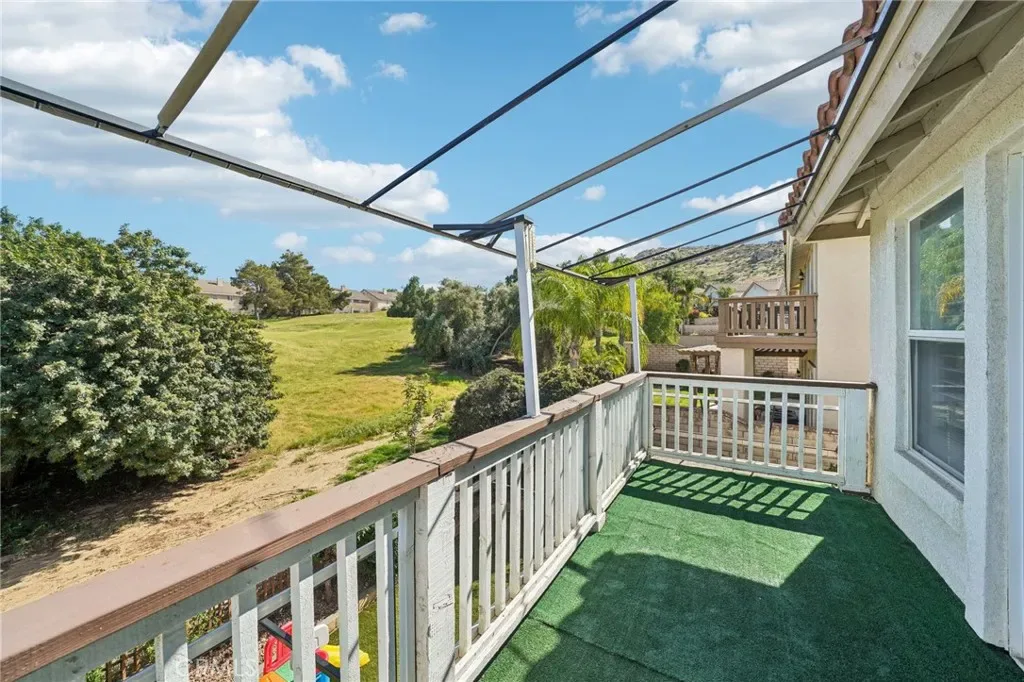 The backyard backs to a greenbelt and features low-maintenance turf and a covered outdoor seating area. A private balcony overlooking the greenbelt provides an additional outdoor retreat. Additional highlights include a 3-car garage.