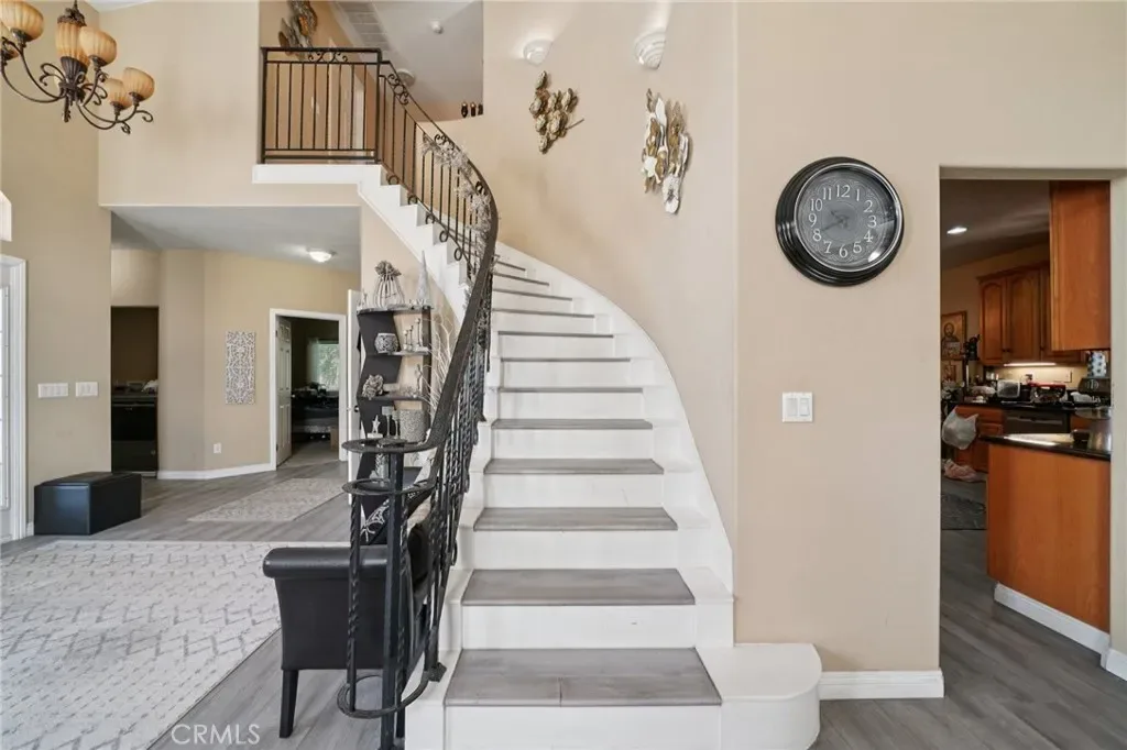 UPGRADED LARGE 4 BEDROOM AND 3 BATHROOM HOME LOCATED IN A CUL DE SAC, CATHEDRAL CEILINGS WITH A BEAUTIFUL STAIRCASE LEADING TO THE 2ND FLOOR, UPGRADED KITCHEN WITH DINING AREA, ALSO A FORMAL DINING ROOM, MODERN FIREPLACE IN THE LIVING AREA, ONE BEDROOM DOWN STAIRS AND THE OTHER 3 BEDROOMS ARE LOCATED UPSTAIRS, ONE MASTER BEDROOM UPSTAIRS WITH WALK IN CLOSET WITH LARGE BATHROOM THAT HAS A JACUZZI TUB AND SHOWER, DOUBLE SINKS, UPGRADED WOOD FLOORING IN THE LIVING ROOM, FAMILY ROOM, KITCHEN, LAUNDRY ROOM, STAIRS. LARGE FRONT AND BACK YARD WITH LARGE PATIO IN THE BACKYARD, NEW SOLAR PANELS, BRAND NEW SPRINKLES INSTALLED, EV CHARGING IN THE GARAGE, LARGE CARPORT ON THE SIDE OF THE HOME, LONG OPEN DRIVEWAY FOR PARKING SEVERAL CARS OR LARGE RV. LOCATED CLOSE TO ENTERTAINMENT, SHOPPING, SCHOOLS, FREEWAYS.