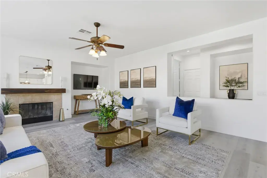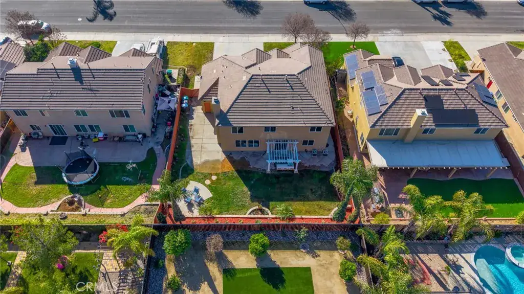 Welcome to 26618 Emerald Ave., located in the desirable East Moreno Valley community. This spacious two-story home offers 5 bedrooms, 4 bathrooms, and 3,283 sq ft of living space on an 8,276 sq ft lot, built in 2005. From the moment you arrive, you’ll appreciate the inviting curb appeal with mature plants and flowers, a three-car garage, and ample driveway parking. Step inside to a formal entry with soaring ceilings and an open, airy floor plan filled with natural light. The formal living room features large windows and flows seamlessly into the adjacent dining area, creating an ideal space for gatherings. The kitchen is located at the rear of the home and offers abundant cabinet and counter space, a large center island, pantry cabinet, granite countertops, pendant and recessed lighting, and views of the backyard. There is room for a family breakfast table, and the kitchen opens directly to the spacious family room, complete with tall ceilings, ceiling fan, large windows, and a decorative tiled fireplace with custom mantle. A cozy media nook provides the perfect spot for a television or entertainment setup. The downstairs level includes a bedroom and full bathroom, ideal for guests or multigenerational living, as well as an interior laundry room with utility sink and cabinet space. Upstairs, you’ll find beautiful flooring throughout and a generously sized primary suite featuring a ceiling fan, walk-in closet, and an oversized en-suite bathroom with dual sinks, walk-in shower, and separate soaking tub. Three additional bedrooms are located upstairs, two of which share a Jack-and-Jill bathroom with double sinks. All bedrooms feature simple, updated light fixtures. An extra-large loft with abundant windows provides flexible space—perfect for a second living area, home office, workout room, or playroom. Additional upgrades include updated light fixtures throughout, newer outlets and switches, updated door hardware, new laminate flooring and fresh interior paint. The backyard is spacious and ready for entertaining, featuring a wood fence, retaining wall, hardscaping, and grass—perfect for hosting family and friends. Conveniently located near shopping, freeway access, and just minutes from elementary, middle, and high schools, as well as Morrison Park and the popular Lighted BMX Park. This home offers incredible space and privacy—ideal for anyone looking for room to grow without feeling crowded.
