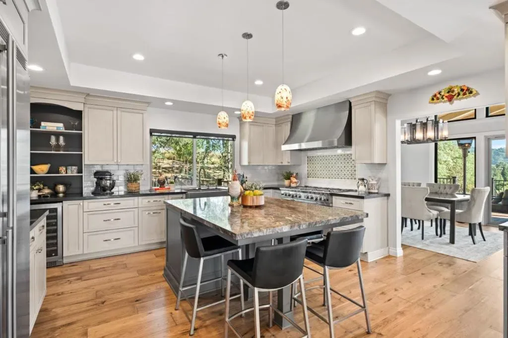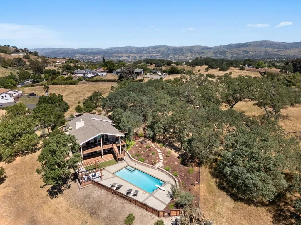 Set in the rolling hills of Paradise Valley, this private Morgan Hill estate offers refined living on ~3.4 acres of serene, hilltop land. Recently reimagined with a cohesive modern design, the home blends warmth and sophistication throughout. A reverse floor plan places the main living areas and primary suite upstairs, capturing sweeping hillside views. The vaulted great room features wood-beam ceilings, wide-plank flooring, and seamless access to a covered deck for effortless indoor-outdoor living. The chef’s kitchen is beautifully appointed with custom cabinetry, premium appliances, including a 48 BlueStar dual-fuel 8-burner range, a Liebherr refrigerator, a Bosch dishwasher, and a large island and pantry. The upper-level primary suite offers a peaceful retreat with a spa-inspired bath, dual vanities, a glass shower, and a private patio. The lower level lives like a resort, with three-bedroom suites, a spacious family room, and direct access to the pool, spa, and pergola lounge. Enjoy multiple entertaining areas, open land for recreation or hobby farming, and a detached workshop. Private, yet minutes from Morgan Hill’s vibrant downtown, this is more than a home-it is a place to slow down, spread out, and experience a lifestyle that is increasingly rare in today’s market.
