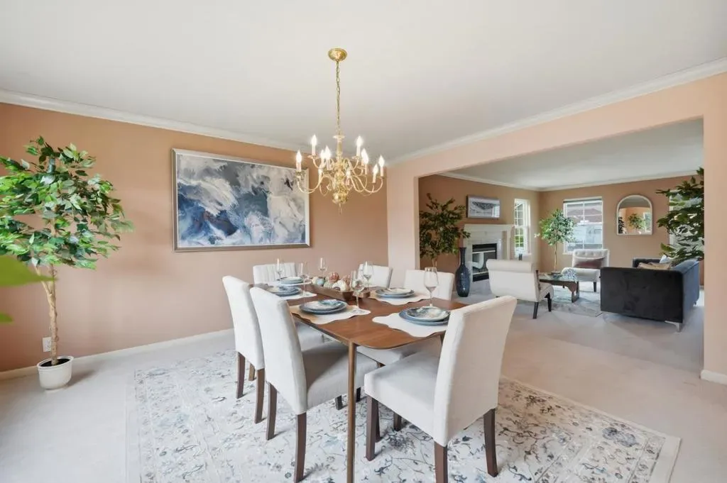 Located in Morgan Hills sought-after La La Land neighborhood, 15670 Via Castana offers 2,939 sq ft of spacious living on an 8,383 sq ft lot. This 4-bedroom, 3-bath home showcases great curb appeal with unique colonial-style architecture, brick accents, and a charming white picket fence. Inside, enjoy a formal living room and formal dining room, along with a separate family room featuring a fireplace and wet bar. The kitchen is equipped with granite countertops, a pantry, and an eat-in area with a built-in desk. A desirable ground-floor bedroom and full bath provide flexibility for guests or extended living. Upstairs, the expansive primary suite offers two walk-in closets and a large en-suite bath. The backyard features a generous patio and landscaped space, ideal for outdoor entertaining. Additional highlights include a 3-car attached garage and assignment to Paradise Valley Elementary. Ideally located near Morgan Hills vibrant downtown, known for its charm, dining, and convenient commuter access.