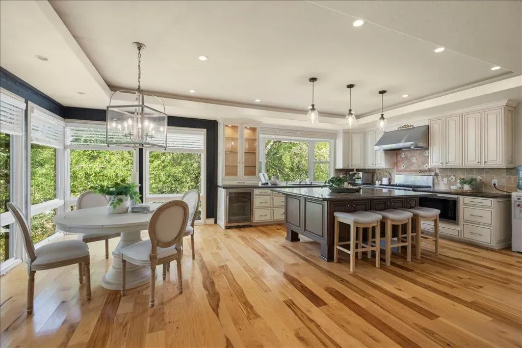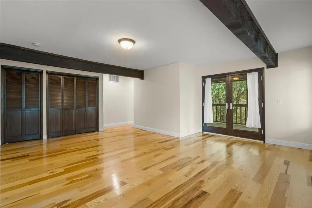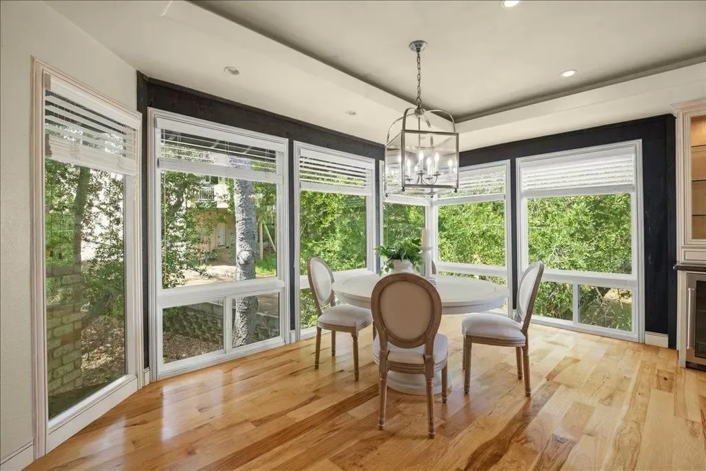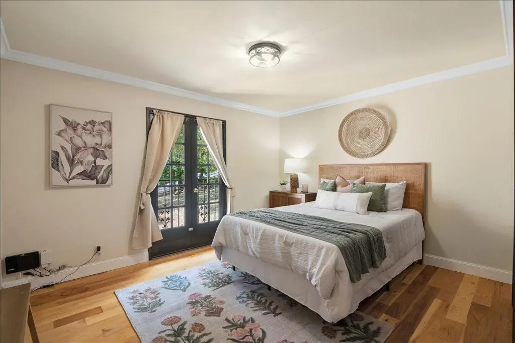 Step into this beautifully designed Spanish-style residence, featuring a formal entryway that sets the tone for refined living. The majority of the home is thoughtfully laid out on a single level, offering both comfort and convenience. Inside, you will find stunning floor-to-ceiling windows that fill the home with natural light, complemented by rich hardwood floors, open beam ceilings, and exquisite crown molding throughout. The large gourmet kitchen is a chefs dream, equipped with a Wolf six-burner gas range, built-in Sub-Zero refrigerator and freezer, granite countertops, and a wine refrigerator, perfect for both everyday living and entertaining. The spacious primary suite offers a true retreat, complete with two walk-in closets, dual sinks, a large walk-in shower, and a luxurious soaking tub. Additional bedrooms are generously sized, providing comfort and flexibility for family or guests. Downstairs, a private secondary primary suite features French doors, its own balcony, living area, and a beautifully updated full bathroom ideal for guests or multi-generational living. Enjoy exceptional privacy while being just minutes from town, creating the perfect balance of seclusion and convenience.