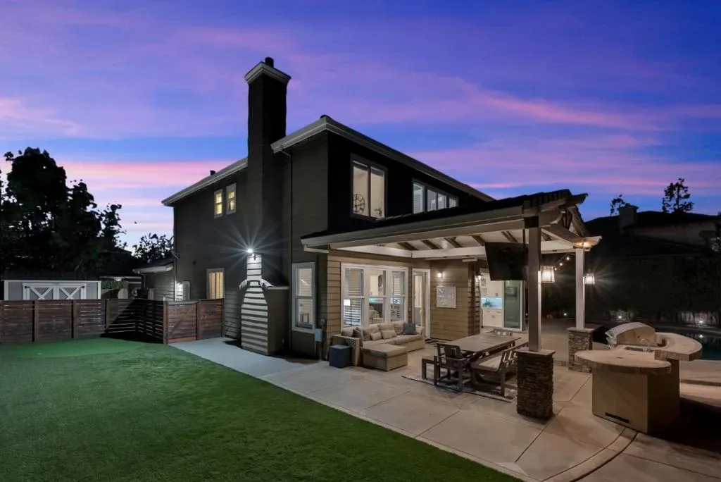 Stunning fully remodeled entertainer’s dream home located at the end of a private cul-de-sac, one house from an expansive neighborhood park. Soaring ceilings and abundant natural light welcome you into an elegant living room. Grand formal dining room with a beautiful chandelier, and a farmhouse-inspired barn door leading to the Chef’s Kitchen. Full Thermador suite with six-burner gas range, range hood, dishwasher and built-in refrigerator. Merano quartz island and countertops, wine and bar station with two beverage refrigerators, white shaker cabinets, subway tile backsplash with herringbone accent, and bifold cantina doors to the backyard. The entertainer’s dream backyard features a custom pavilion with open beam ceilings, built-in kitchen, sparkling pool and spa, basketball hoop, putting green, turf side yard with lighting, and amazing Japanese maple. Large downstairs guest bedroom with contemporary remodeled bath. Upstairs landing homework nook that leads to the primary suite with vaulted ceilings, dual walk-in closets, jetted tub, frameless shower and quartz countertops with dual sinks. 3 additional bedrooms, laundry room, whole house fan, home automation and shed. 3 incredible neighborhood parks in one of Morgan Hill’s most sought after neighborhoods. This home has it all!