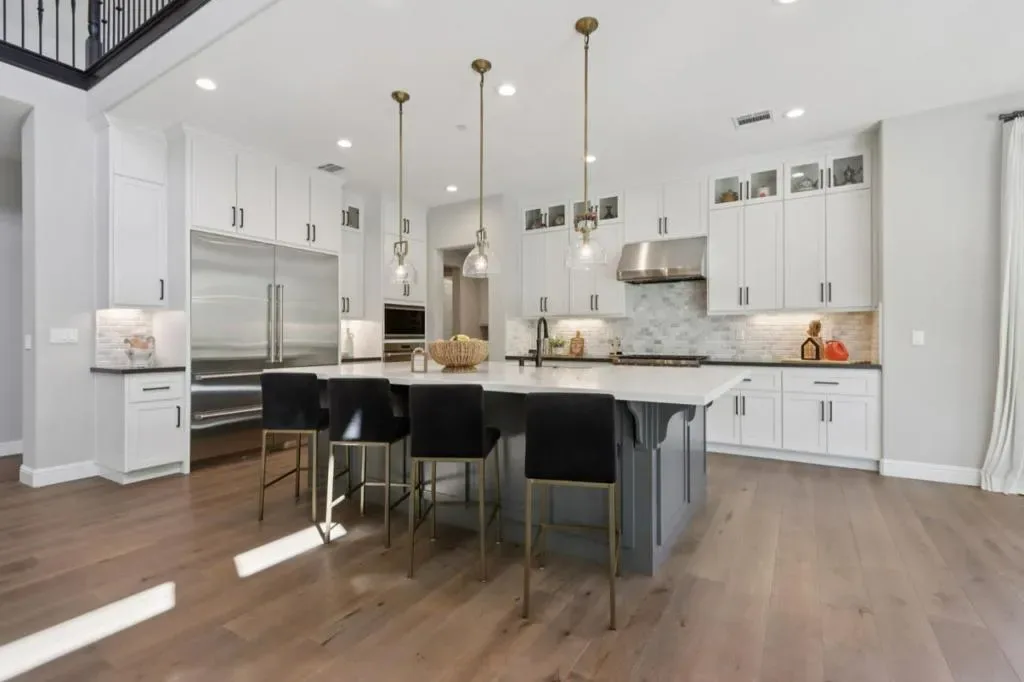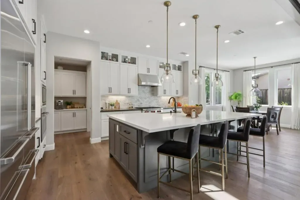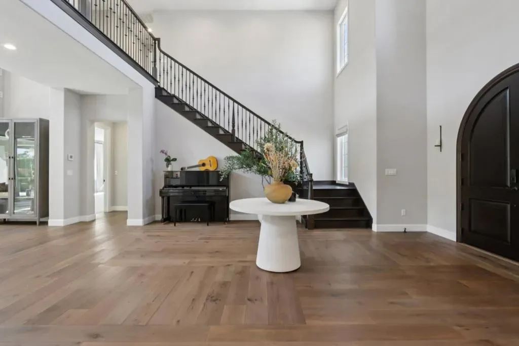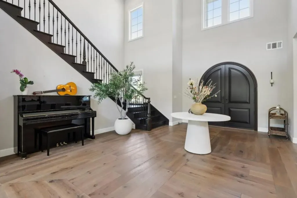 It’s time to live the lifestyle you deserve at the highly coveted Borello Ranch Estates. Step into the foyer and take in the 20 foot soaring ceilings and equally impressive hardwood floors in an intricate and delicate mosaic pattern. Custom 90-degree windows at the kitchen and great room stack open to bring the outside in for optimal entertaining and enjoyment of Morgan Hills amazing weather. Your pickiest chef in the house will love the gourmet kitchen with stainless steel Wolf appliances, built-in oversized refrigerator, custom designer cabinets that are flush to the ceiling, Quartz countertops, decorative backsplash and two-toned island. Not to mention the gigantic walk-in pantry with more designer touches. The sprawling first floor primary bedroom is your private oasis! No more fighting over closet space in two over-sized walk-in closets with built-in custom cabinets. Enjoy an additional bedroom and huge laundry room with sink downstairs and additional 3 bedrooms and loft upstairs.