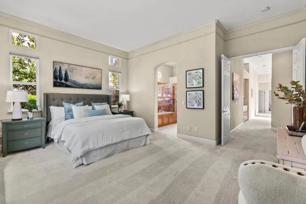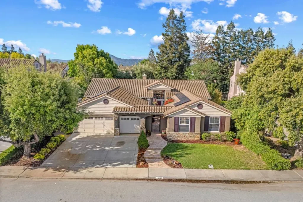 Welcome Home to Beautiful Coyote Estates! This spacious, single level 4 bedroom plus office, 3.5 bath home is situated on a quiet cul-de-sac in one of Morgans Hills most desirable neighborhoods. Offering a large 9140sf lot and 2827sf of comfortable living space. The kitchen features an island, counter seating, a pantry, granite countertops, a gas cooktop, dishwasher, refrigerator, and wine refrigerator! It seamlessly connects to the family room for a convenient kitchen/family room combo. Flooring includes tile and brand new carpet throughout. The entire interior was painted last month. The home has dual see-through gas log fireplaces in the living and family rooms. Primary Suite is very spacious with extra large windows for lots of natural light. Primary bath includes a jetted tub, stall shower and walk-in closet. There is also another en suite bedroom that is great for guests or family to have total privacy. Laundry room is located inside the home with built in ironing board and large sink. Leased Solar system! Additional amenities include central AC and forced air heating and built-in vacuum. Three car garage with cabinetry. This location is one of the best in town with close proximity to the county Park area and also Highway 101. Shopping is just a few minutes away!