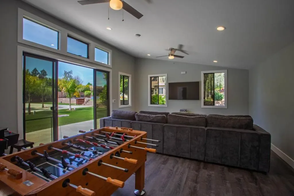 Welcome to 1960 Pear Dr, a beautifully renovated home in Morgan Hill blending luxury, comfort, and modern design. With 4,232 square feet, it offers 5 spacious bedrooms and 3 updated bathrooms with 2 half baths. The thoughtfully updated kitchen features high-end appliances, gorgeous countertops with two dishwashers, tile flooring, dual-pane windows, and whole-house solar that adds style and efficiency. The primary suite includes a spa-like free standing bath with dual vanities, walk in shower, fireplace and large walk-in closet. Custom California Closet systems are found throughout the home. Enjoy a large media/game room off of the family room with a drink fridge and microwave. Outdoors, relax in the solar-heated pool and hot tub, or entertain in the pool house, on the patio with a gas fire pit, horseshoe pit, and full-size tennis court. The landscaped yards, RV parking with hookup, and raised garden beds add versatility. Additional features include central heating and AC, shutters, and a 4-car garage. This exceptional home is perfect for both relaxing and entertaining! Don’t miss this one!