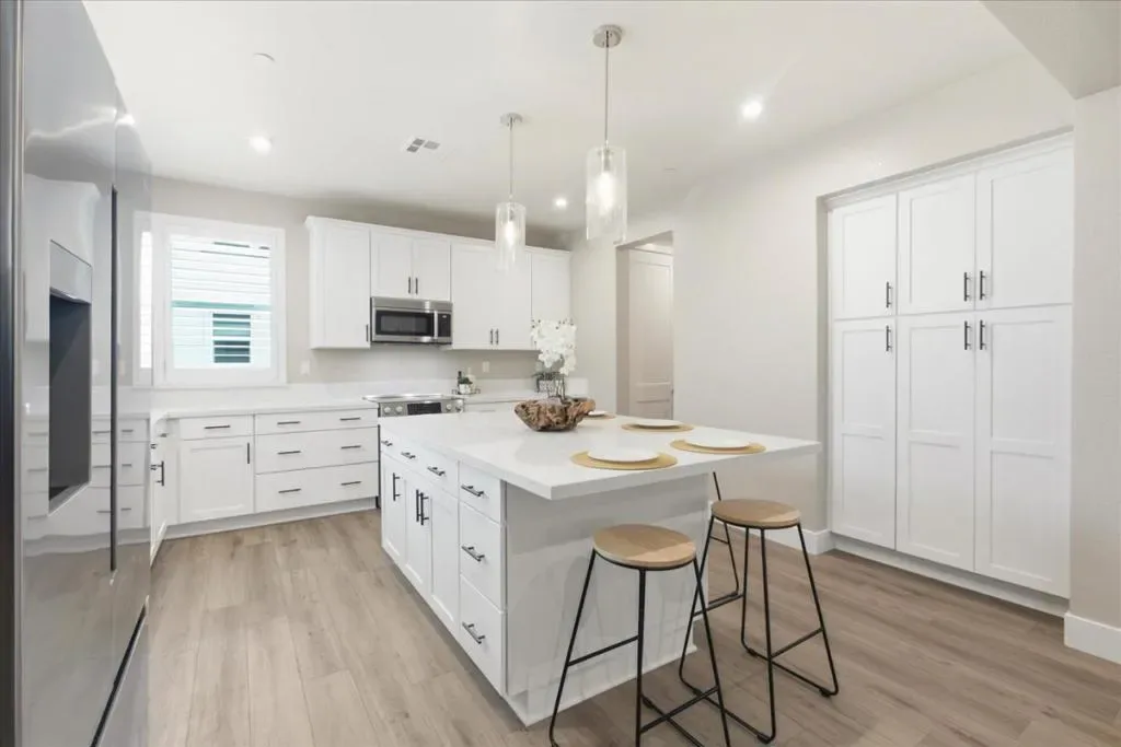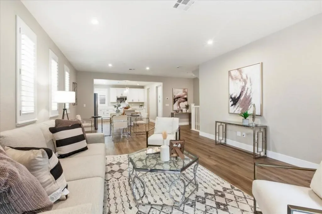 Welcome to this new construction, Brookfield townhome. Seller upgraded to make their primary residence but was never able to occupy the home due to new job opportunity. Now is your chance to make this beautiful home yours as it is move-in ready! Seller upgrades include designer two-tone paint throughout, upgraded carpets, LVP on all stairs, shutters with upper and lower controls, fabric vertical panel shade over the sliding glass door, roman shade on the front door, wired ethernet in all bedrooms, new Bosch stainless steel refrig, new LG washer & dryer, ceiling fan in the primary bedroom, epoxy garage floor with slat panel and cabinets installed in the garage, and EV charger. Brookfield features include double pane windows, seller-owned solar panels, all electric home, smoke detectors & fire sprinklers throughout. The home is warmed and cooled by central heating/AC. Save money on energy costs with electric heat pump water heater, high-efficiency faucets, shower heads and toilets. Explore downtown Morgan Hill filled with local boutiques, cafes, and various dining establishments. Shop the large retail stores like Target, Home Depot, Walmart, and Dick’s Sporting Goods. Enjoy the Outdoor Sports Center, Aquatic Center, and many local parks and trails.