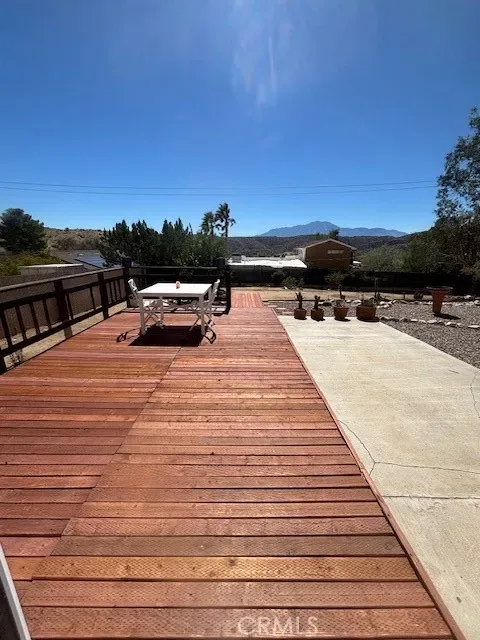 Clear Termite! Clear Septic and appraised for $390,000! Priced to sell! This charming Morongo Valley property is a true desert retreat, perfect as your full-time sanctuary or even a potential Airbnb. Featuring 3 spacious bedrooms, 2 bathrooms, and generous storage, the home combines comfort with thoughtful updates throughout. The open layout, enhanced by a cozy wood-burning stove, creates a warm and welcoming atmosphere from the moment you step through the new front door. The kitchen has been refreshed with newly stained cabinets, butcher block countertops, a sleek black sink, and stainless-steel appliances. The primary suite feels like a private getaway, offering a sitting area, walk-in closet, and en-suite bath. An updated guest bathroom and two additional bedrooms—each with large closets, carpeting, ceiling fans, and individual mini-split AC units—ensure visitors feel right at home. French doors open to a beautiful wood deck overlooking a fully fenced backyard oasis. Mature landscaping, including a lemon tree, creates a tranquil setting with walking paths that wind between the home and garage. Energy efficiency is built in, with solar panels, Tesla batteries, and a new electric panel keeping utility costs low. Conveniently located less than 10 minutes from Big Morongo Canyon Preserve, local hiking trails, and the I-10 freeway—and under 30 minutes from downtown Palm Springs—this home offers the perfect balance of peaceful living and easy access to amenities.